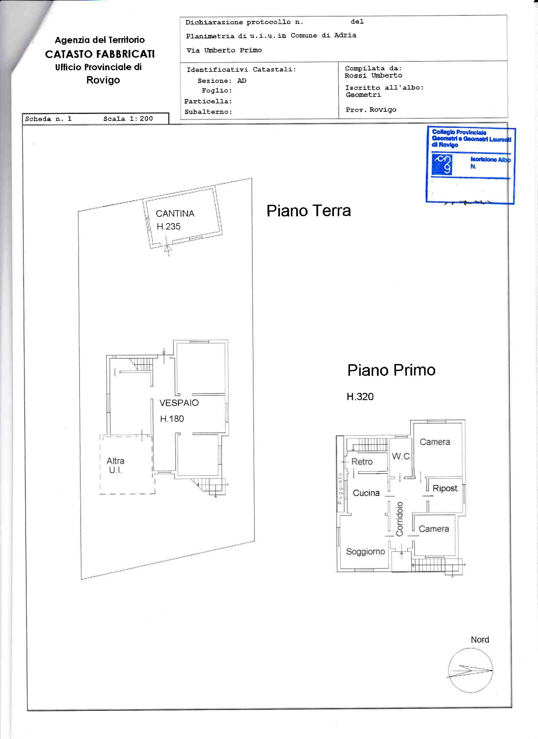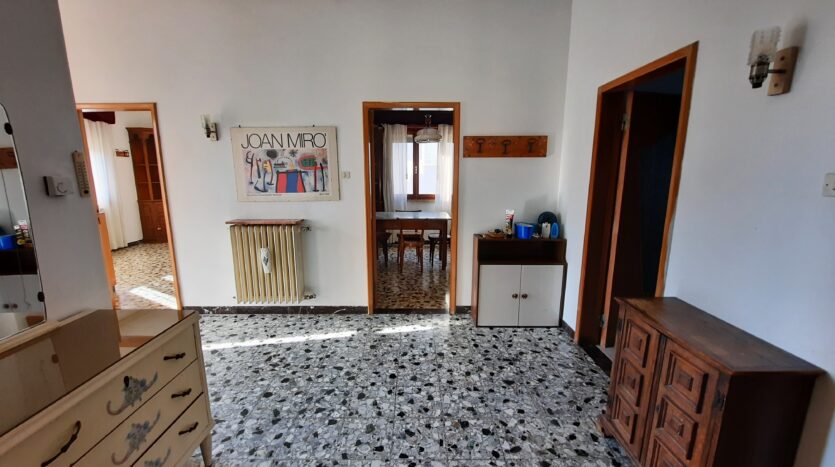 al PIANO TERRA, una parte è accatastata come vespaio con H 1m 80 e una parte come garage di 16 mq, in corpo staccato, sul retro dell’abitazione è presente una casetta in muratura di circa 24 mq con H 2 e 35 accatastata come cantina; AL PIANO PRIMO, scala esterna con balconcino, ingresso, angolo cottura, pranzo, salone, terrazzo, corridoio, 3 camere da letto e 1 bagno.