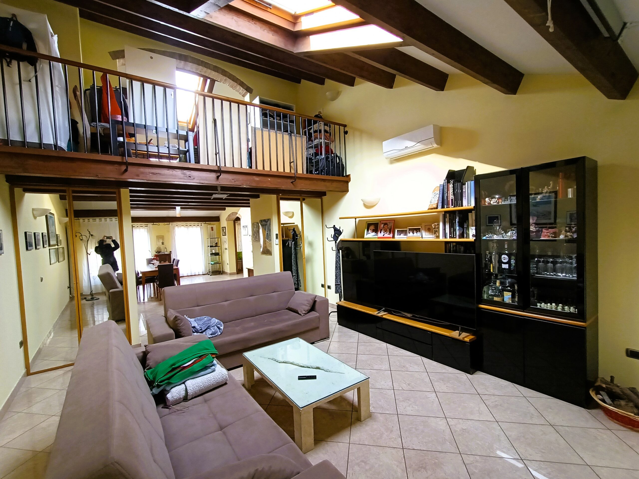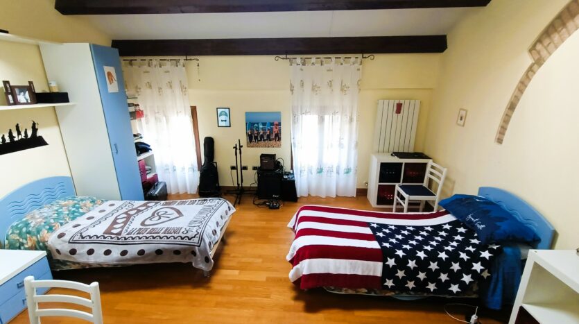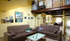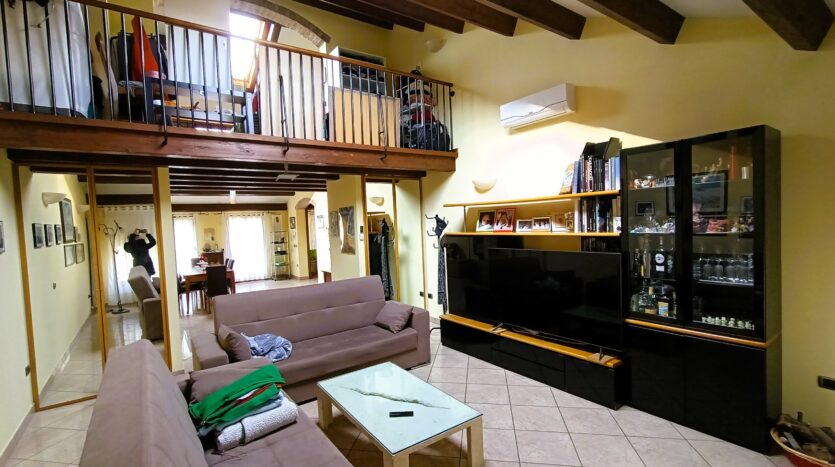 L’abitazione principale, alla quale si accede dal cortile privato tramite una scalinata, si sviluppa ai piani 1° e 2°, con un ulteriore piano soppalcato. E’ composta da ampia entrata al 1°P con scala a vista dalla quale si accede al 2°P caratterizzato da un grande salone con caminetto a legna, cucina abitabile, 3 bagni, 4 camere da letto e soppalco a vista sul soggiorno. Sul grande terrazzo pavimentato esterno, al 1°P, si affaccia un appartamento bilocale utilizzato come dependance/taverna e accatastato insieme all’abitazione padronale. Il bilocale è costituito da soggiorno con cucina a vista, soppalco con camera da letto, antibagno e bagno. Dal terrazzo, inoltre, si accede ad una comoda lavanderia esterna resa indipendente rispetto all’abitazione.