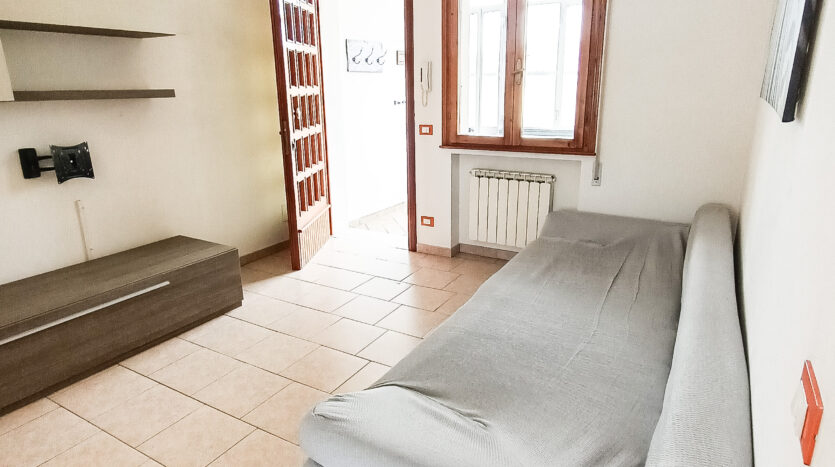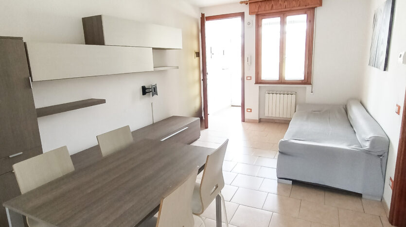L’appartamento è così composto: ingresso indipendente, veranda chiusa, soggiorno, cucinotto, disimpegno, 2 camere da letto, 1 bagno e 1 poggiolo.