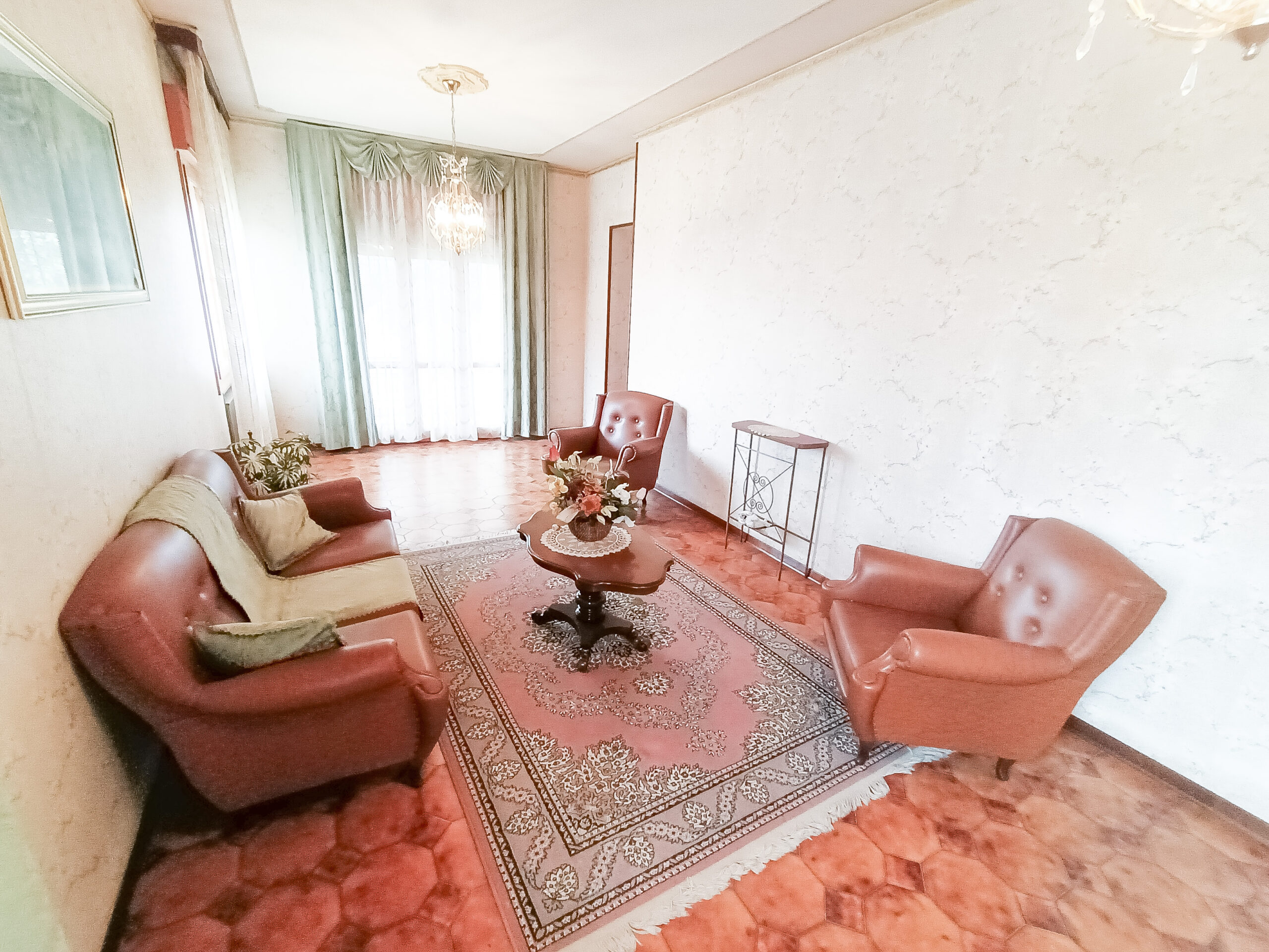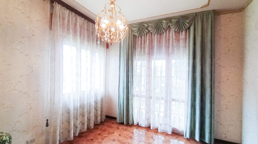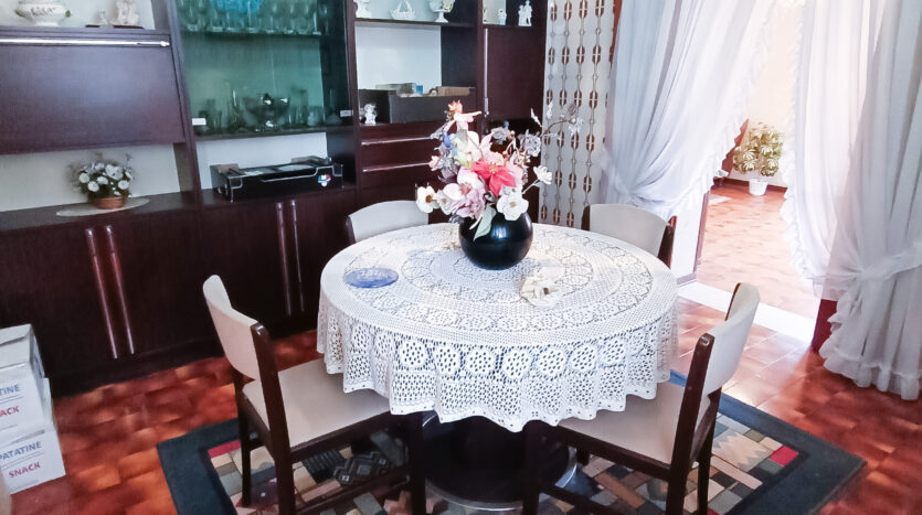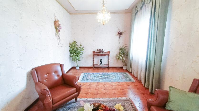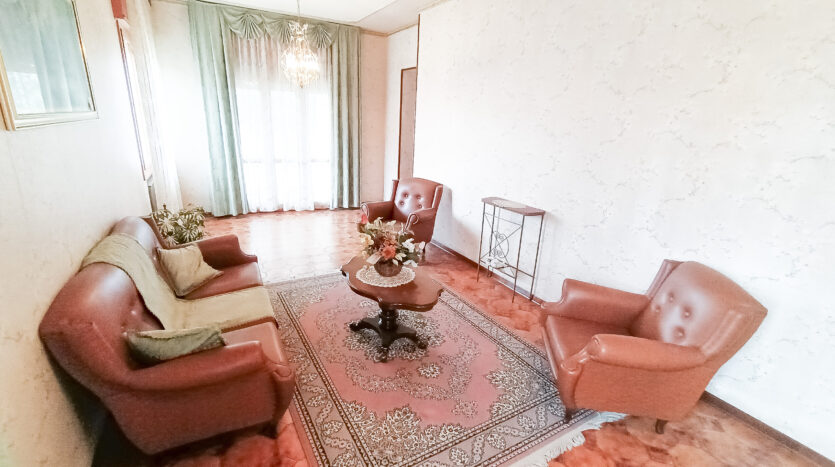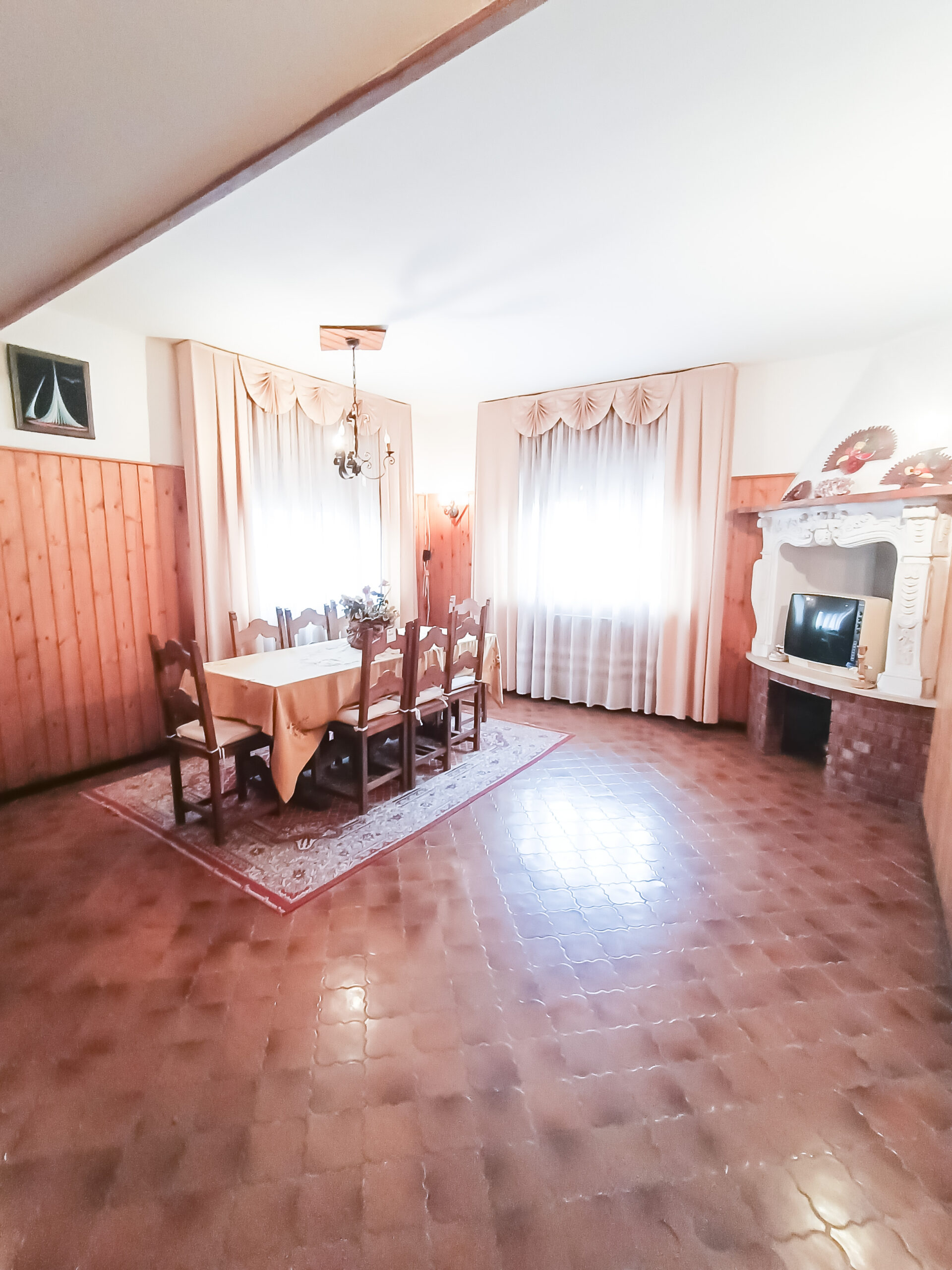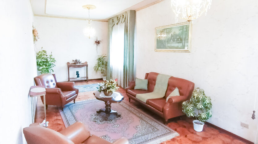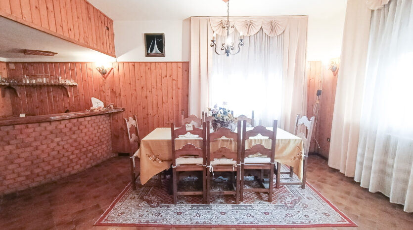 L’abitazione, costruita nel 1975, vanta oggi ampi e comodi spazi interni, in linea con lo stile dell’epoca.