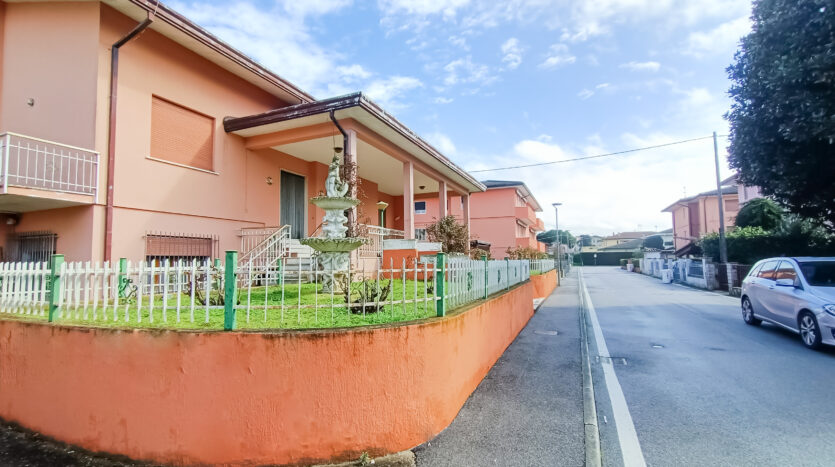 Esternamente è presente un bellissimo giardino piantumato con cespugli di rose esposto a sud-est, dotato di impianto di irrigazione. A nord-est si trova la parte adibita ad orto, mentre a sud-ovest vi è l’ingresso carraio pavimentato in getto lisciato.