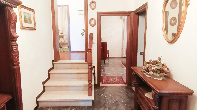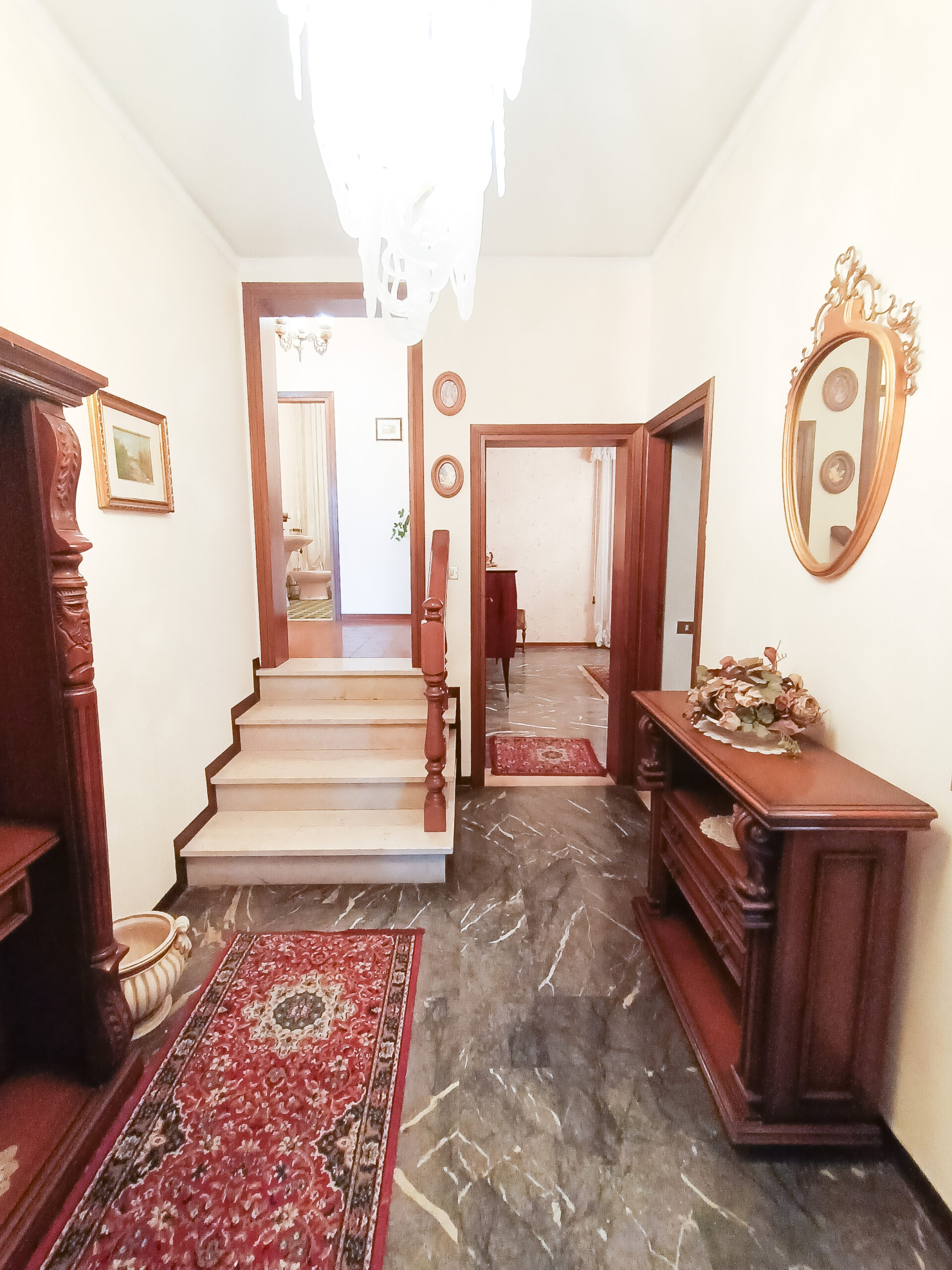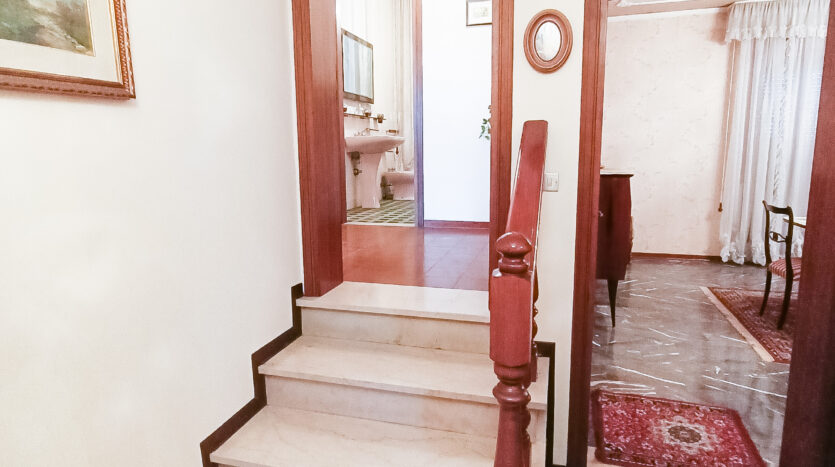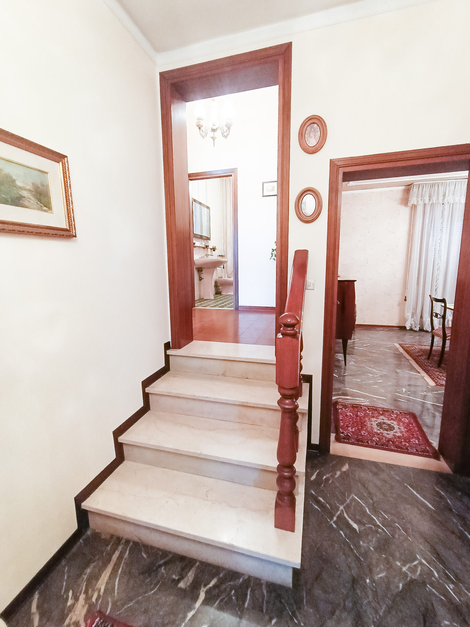 – il primo piano, che con i suoi 152 mq di superficie è lo spazio abitativo principale, è composto da un ampio ingresso accessibile dall’esterno attraverso un bellissimo portico in muratura, soggiorno, cucina abitabile, ampia sala da pranzo con luminosa portafinestra affacciata sul poggiolo, disimpegno notte, bagno padronale, ripostiglio e due camere da letto matrimoniali che condividono un terrazzo. La cucina e la sala da pranzo sono accessoriate di serramenti in legno con vetrocamera isolante, mentre il soggiorno e l’ingresso presentano un’elegante pavimentazione in marmo grigio carnico. Il sottotetto è praticabile.