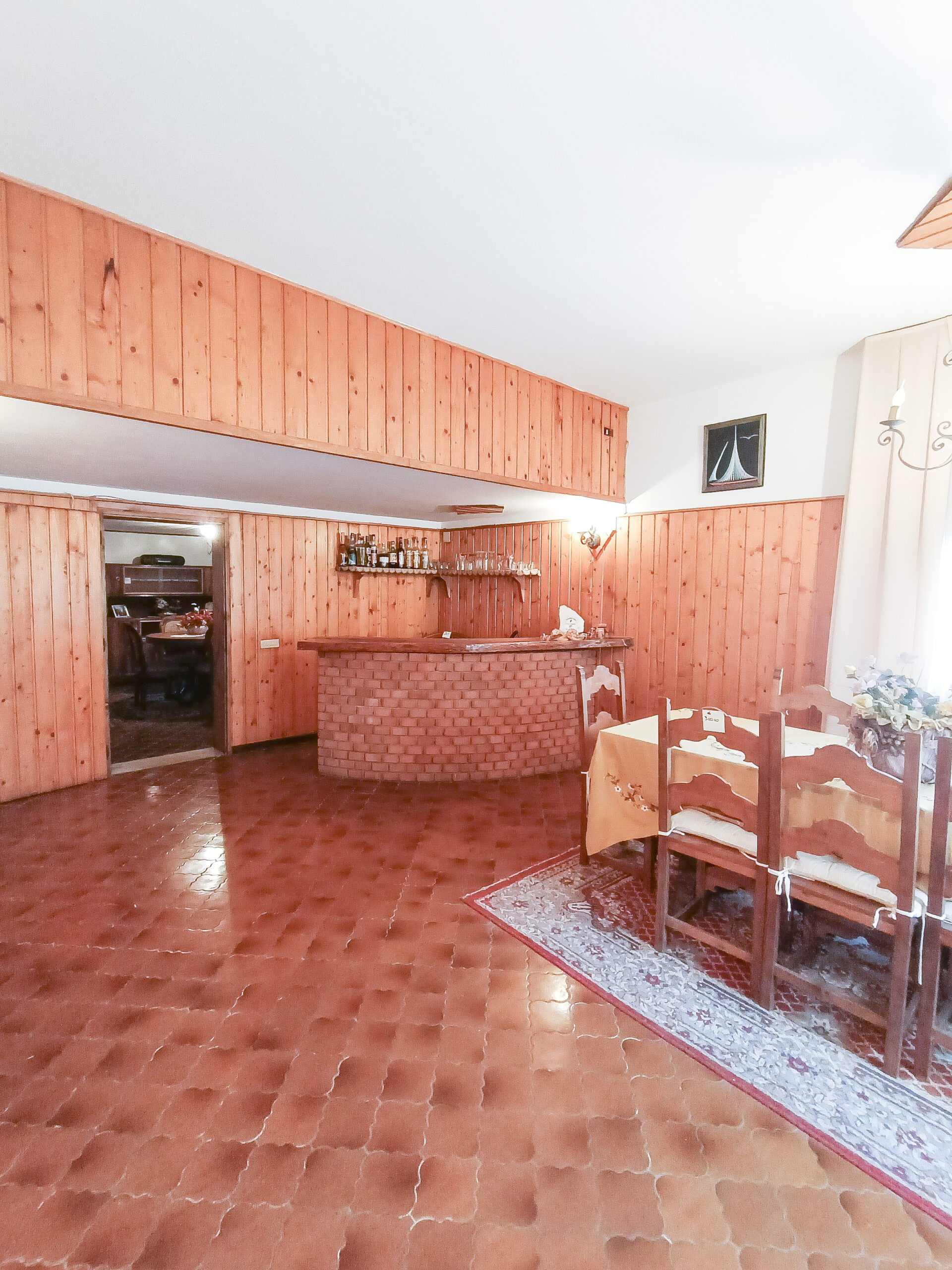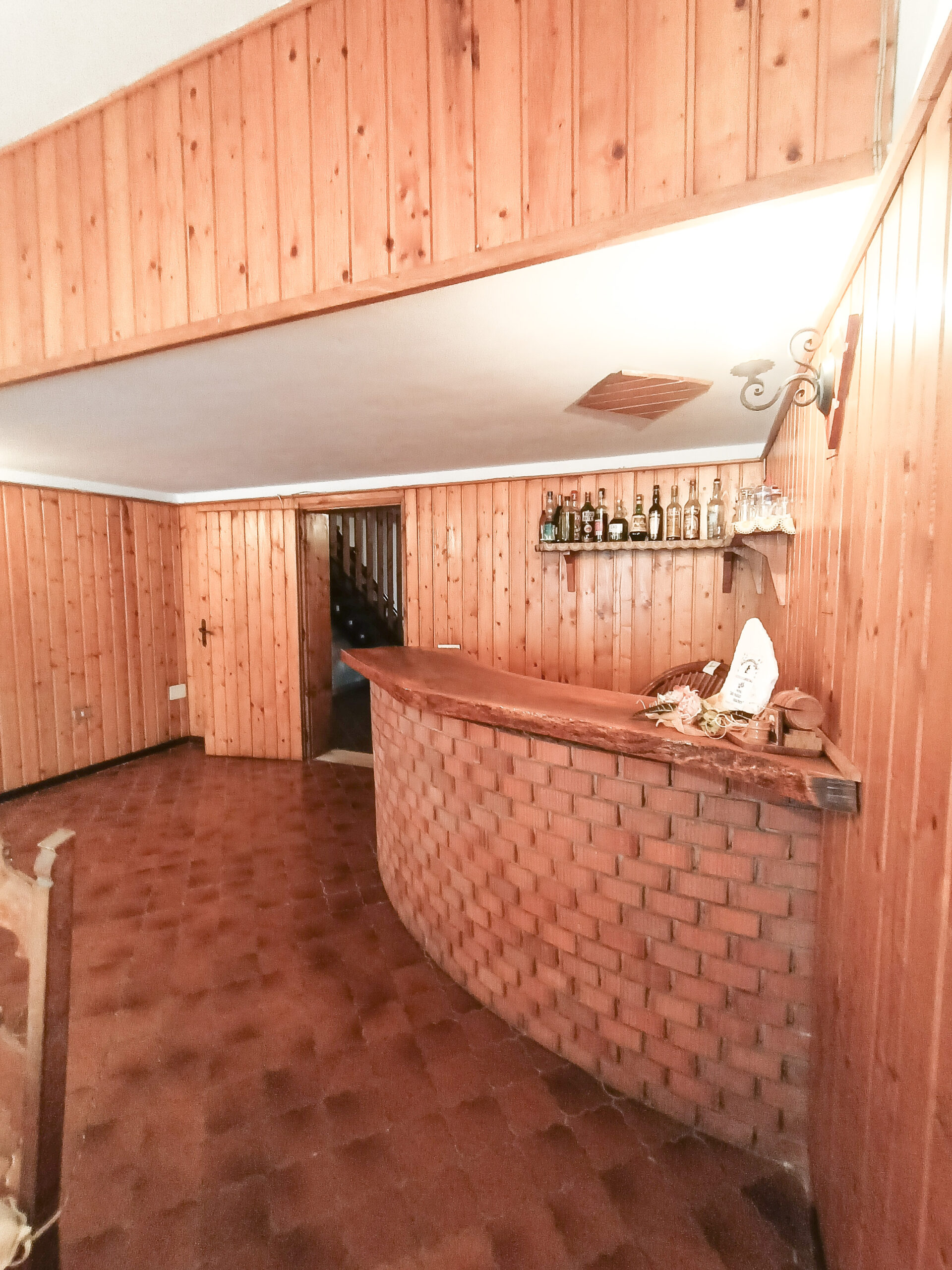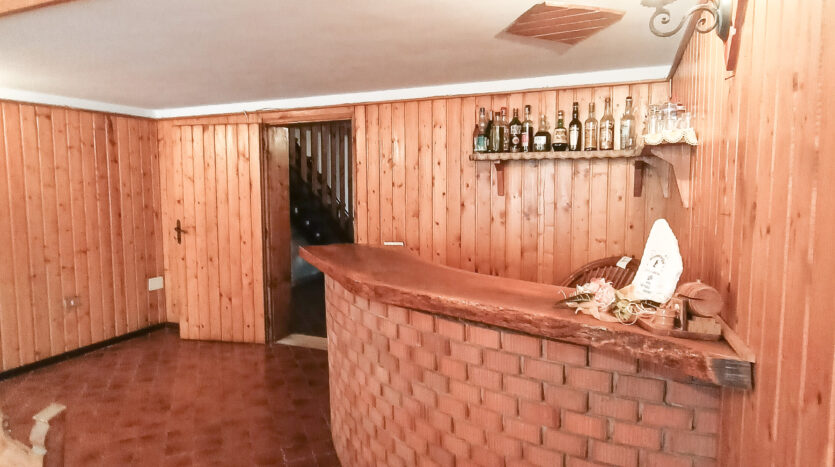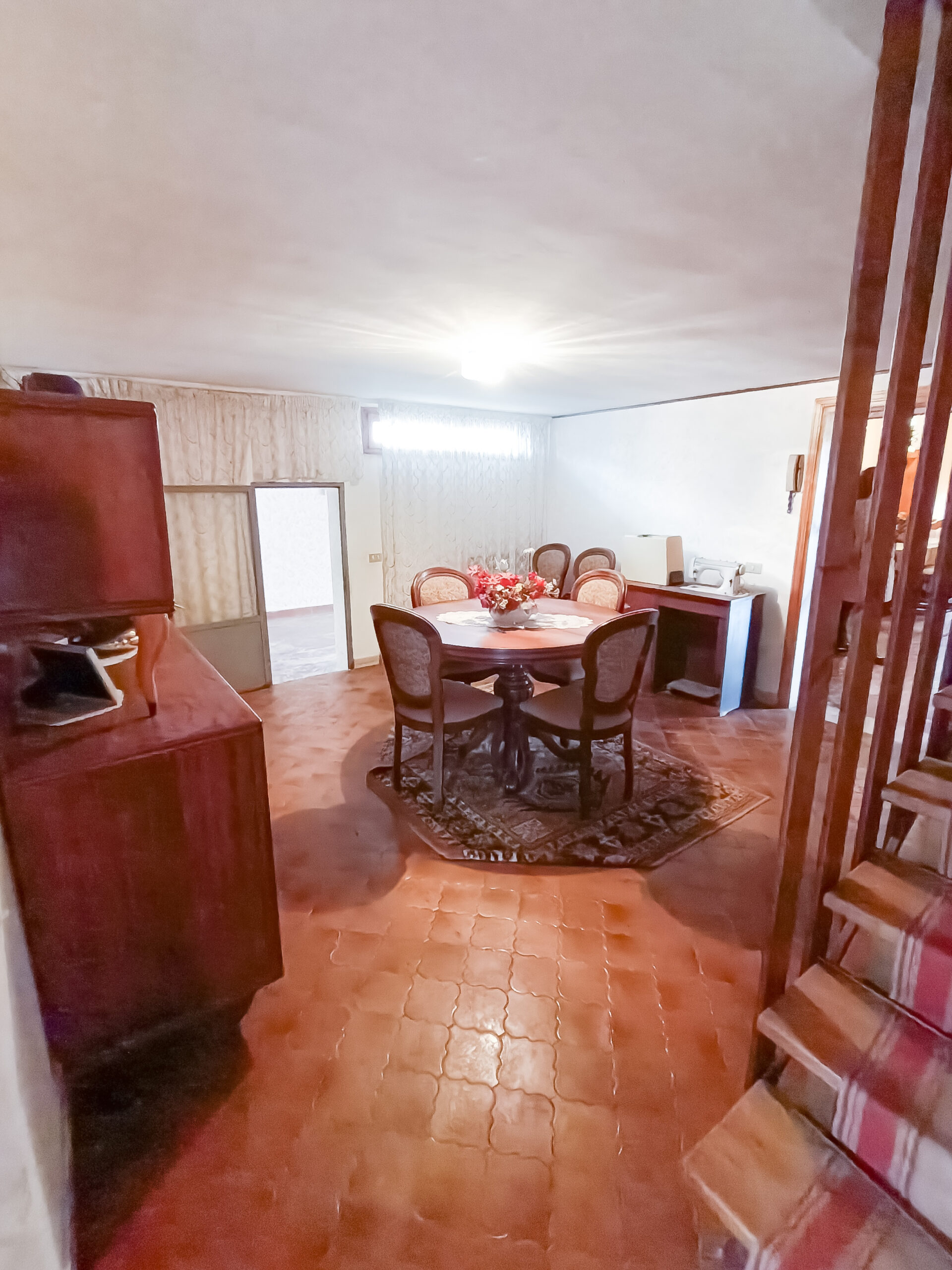 – il piano terra, accessoriato di inferriate su tutte le finestre, è composto da camera da letto, bagno/lavanderia, ampia taverna con caminetto funzionante, perfetta per i momenti conviviali, sala da pranzo con scala in legno che conduce al piano superiore, centrale termica con due accessi esterni, garage comunicante con l’abitazione;