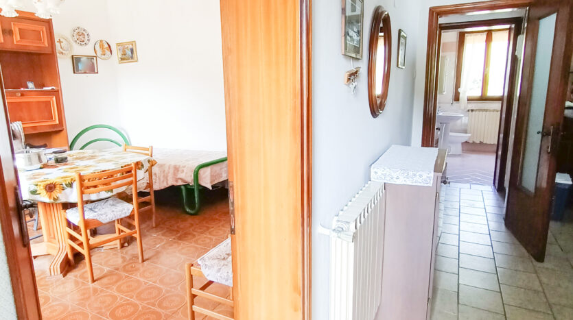 L’abitazione è distribuita su due piani fuori terra ed offre un cortiletto pavimentato sul fronte, utile per parcheggiare un’auto, ed un più ampio cortile pavimentato sul retro da poter personalizzare al meglio in base alle proprie preferenze. Internamente, al piano terra, troviamo un comodo ingresso esposto a sud che si sviluppa in un corridoio dal quale raggiungiamo il soggiorno, la cucina abitabile con porta d’accesso al cortile, il ripostiglio sottoscala, il bagno con doccia ristrutturato in tempi recenti; al piano primo, invece, troviamo il reparto notte con il disimpegno, un ampio terrazzo sul retro, una camera matrimoniale comunicante con il terrazzo fronte casa attraverso una portafinestra, una cameretta singola.
