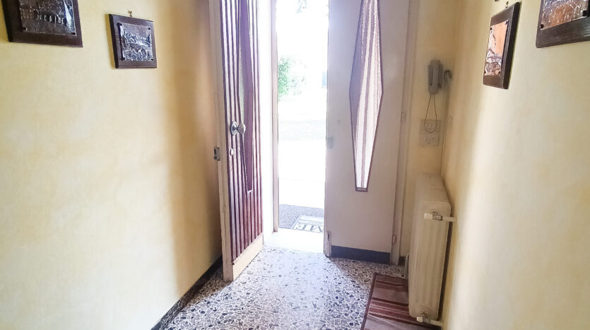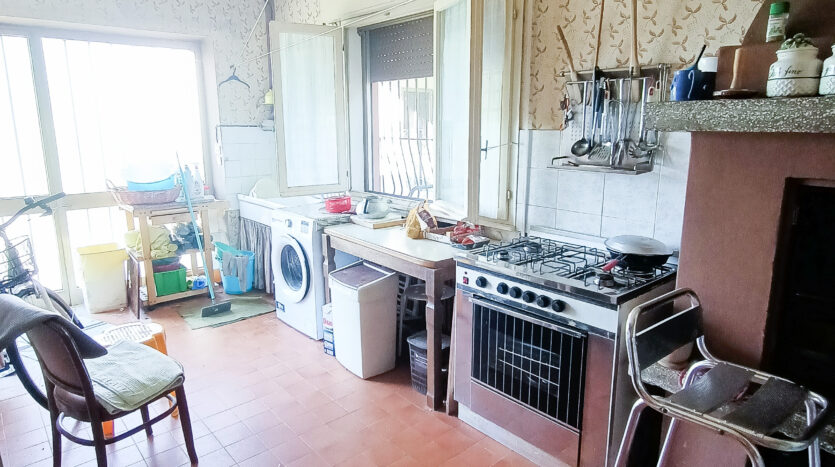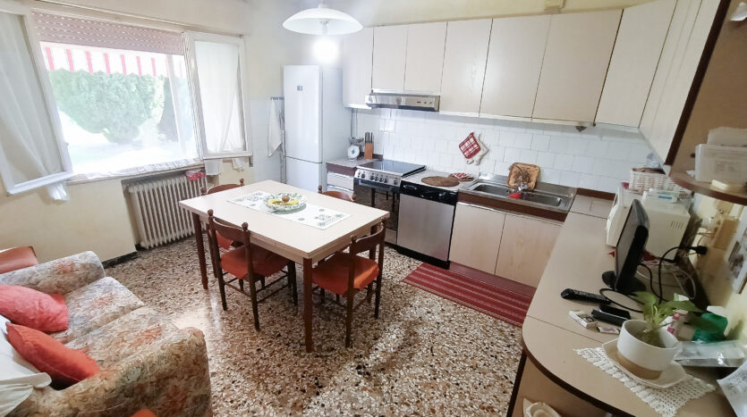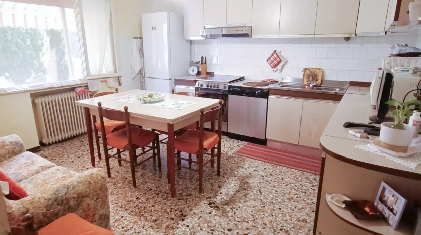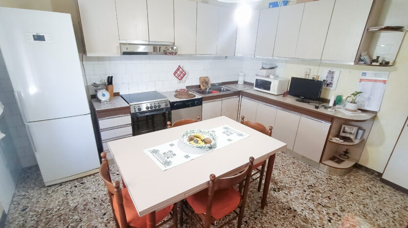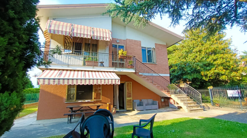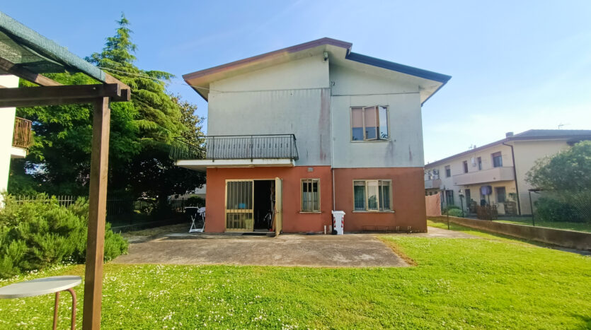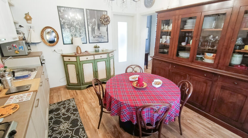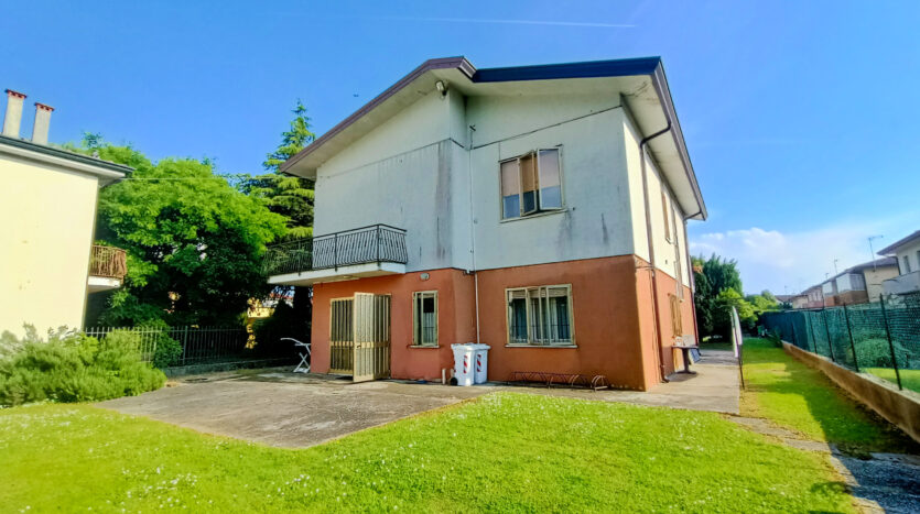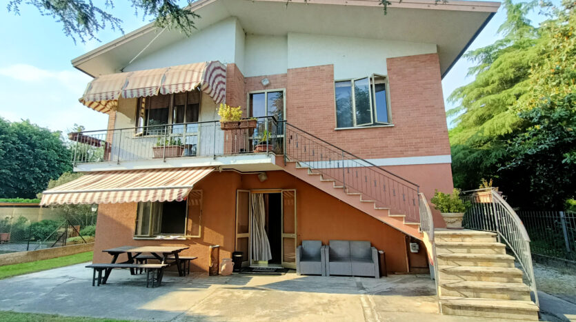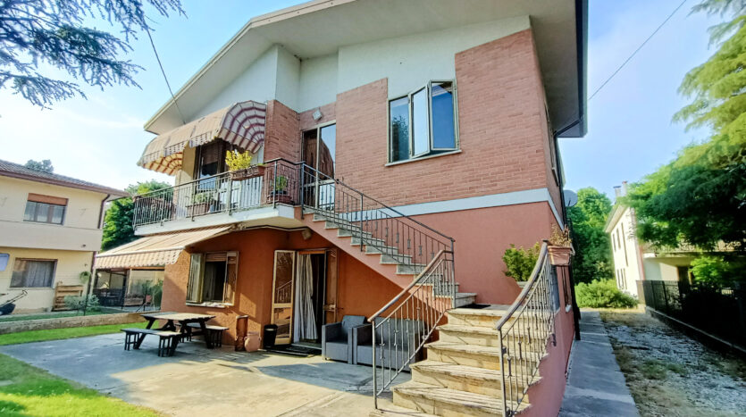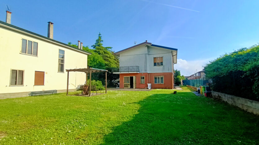 Si tratta di un’abitazione unifamiliare di ca. 240 mq attualmente suddivisa in due unità comunicanti tra loro, sia attraverso una scala esterna che una interna. Il piano terra è composto da ingresso su corridoio, cucina abitabile, soggiorno, una camera da letto matrimoniale, una cameretta, bagno con doccia, una stanza pluriuso ed un garage di 13 mq accessoriato di caminetto; al primo piano troviamo un’ampia zona living, una cucina abitabile con terrazzino, il corridoio, due camere da letto matrimoniali (di cui una con terrazzo), una cameretta ed un bagno con doccia.