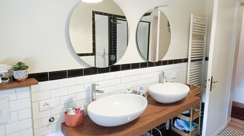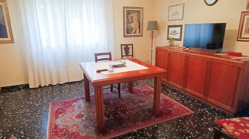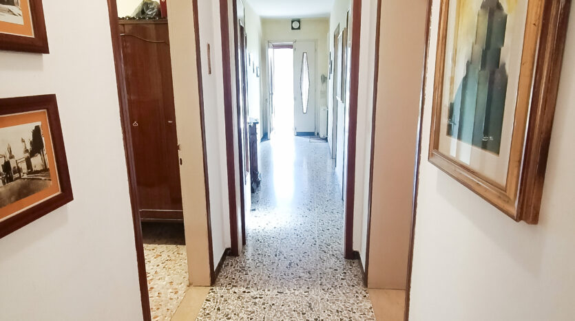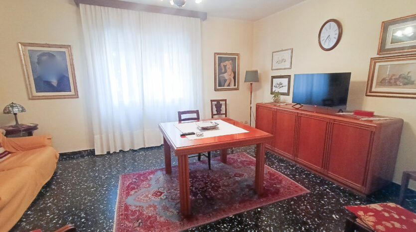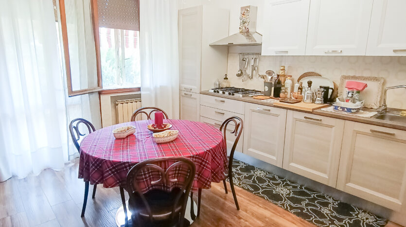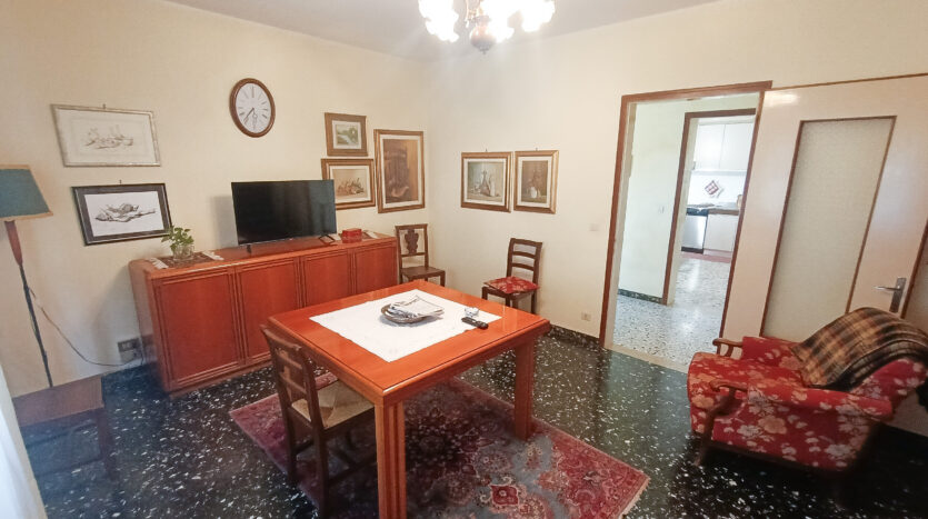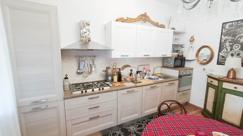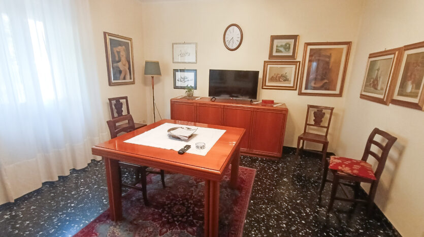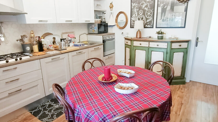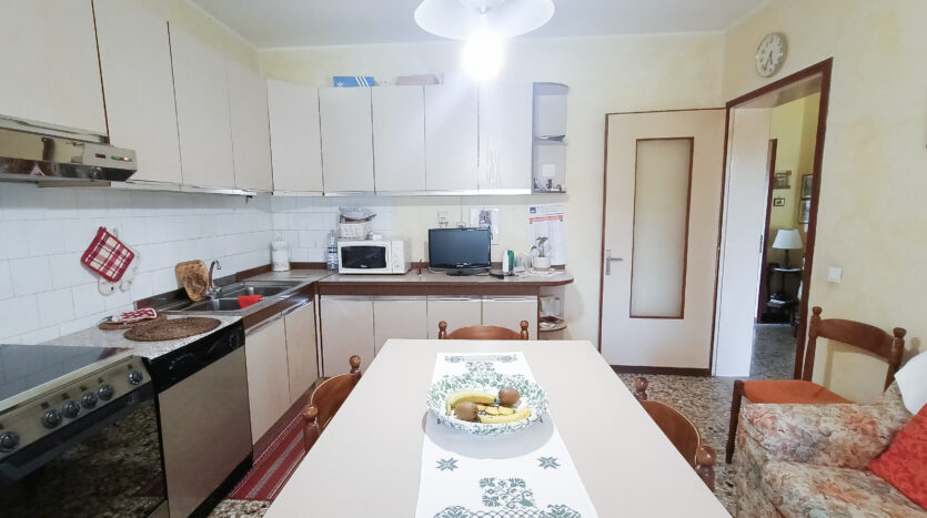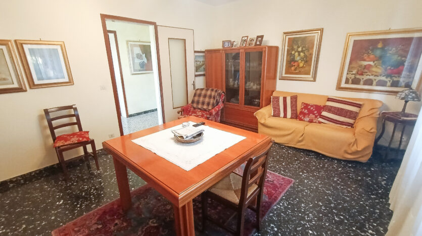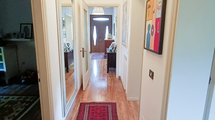 Si tratta di un’abitazione unifamiliare di ca. 240 mq attualmente suddivisa in due unità comunicanti tra loro, sia attraverso una scala esterna che una interna. Il piano terra è composto da ingresso su corridoio, cucina abitabile, soggiorno, una camera da letto matrimoniale, una cameretta, bagno con doccia, una stanza pluriuso ed un garage di 13 mq accessoriato di caminetto; al primo piano troviamo un’ampia zona living, una cucina abitabile con terrazzino, il corridoio, due camere da letto matrimoniali (di cui una con terrazzo), una cameretta ed un bagno con doccia.
