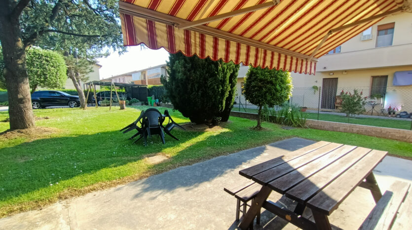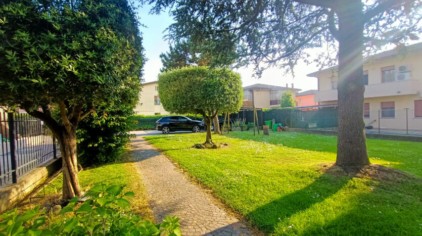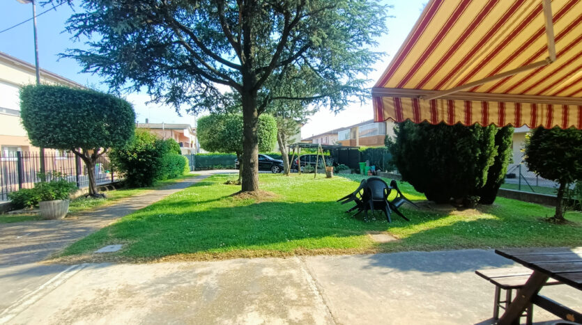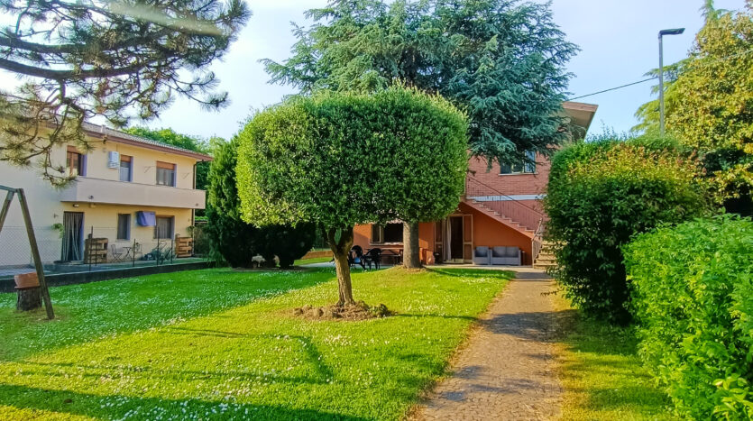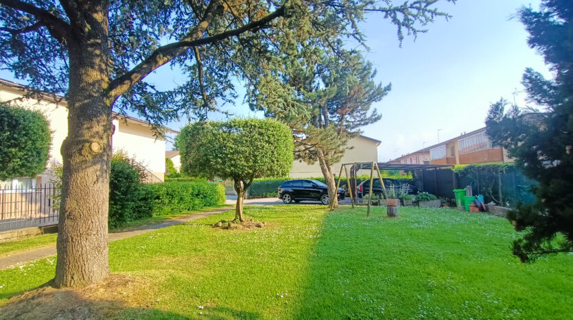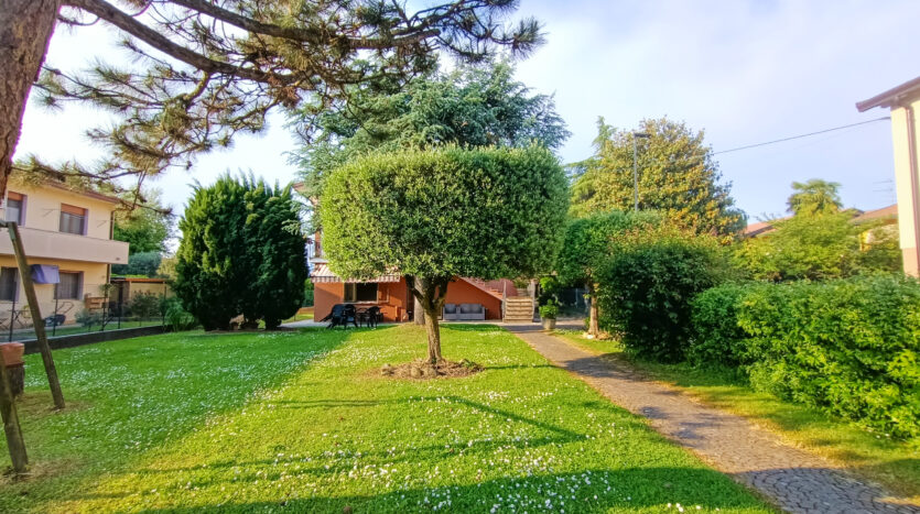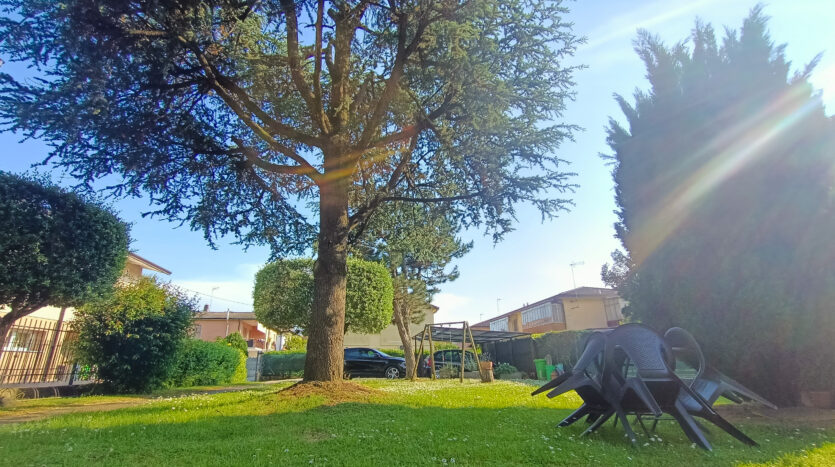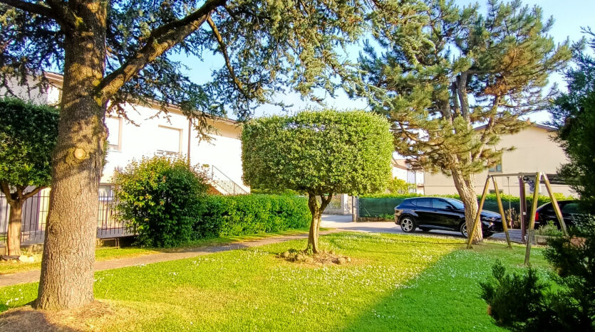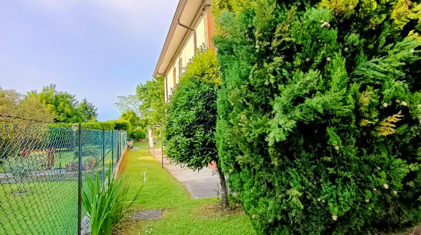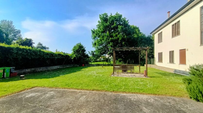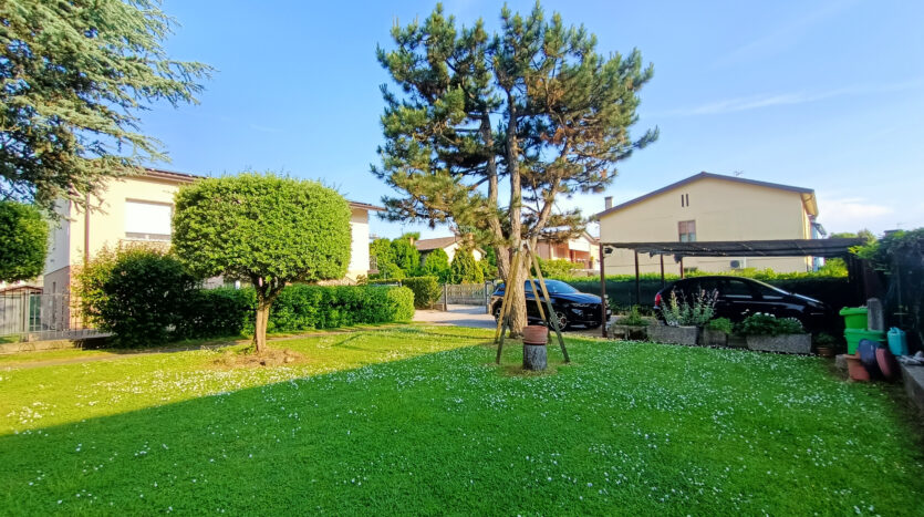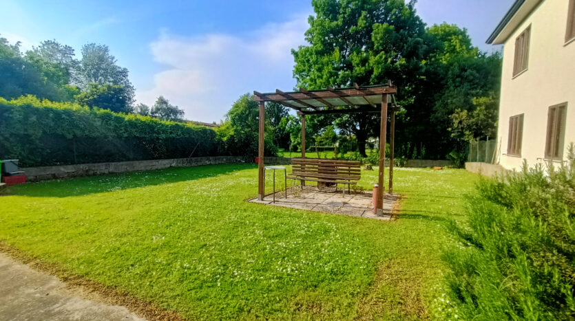 L’intera abitazione è circondata da un rigoglioso prato verde che si estende su una superficie completamente recintata di circa 1000 mq, arricchita di alberi ombreggianti ed alcune siepi che regalano ossigeno e ristoro durante i mesi più caldi. Sul fronte è presente un ingresso carraio, con pavimentazione in cemento, ed una pergola con rete ombreggiante per mettere al riparo fino a 3 auto.