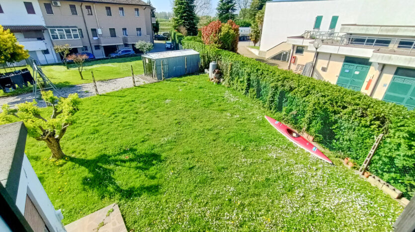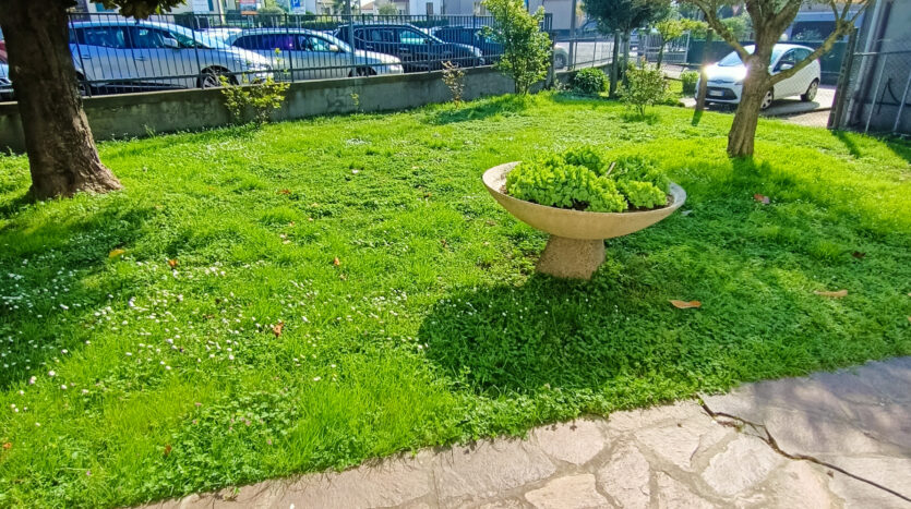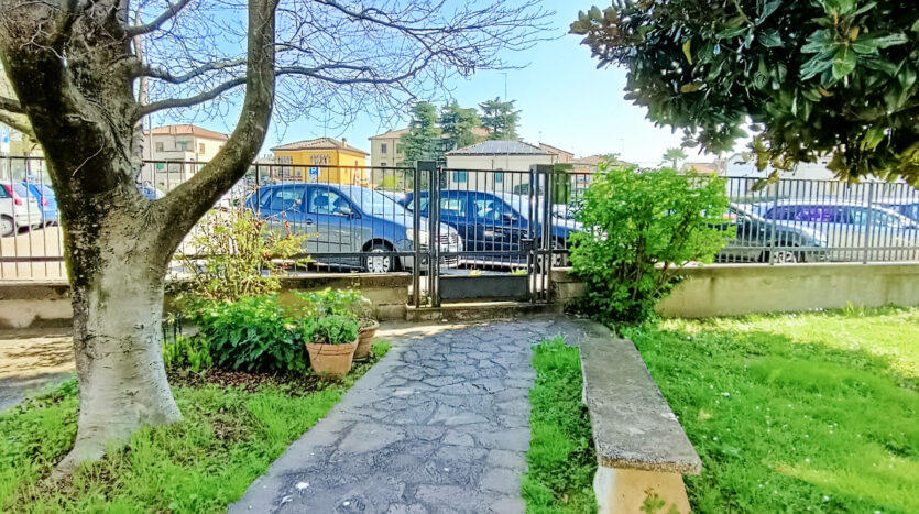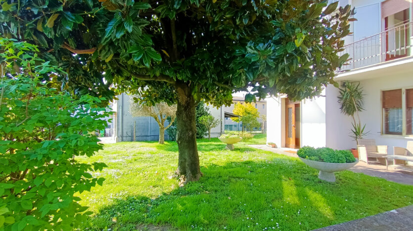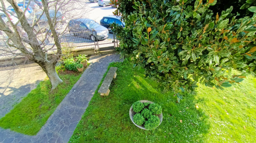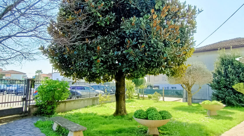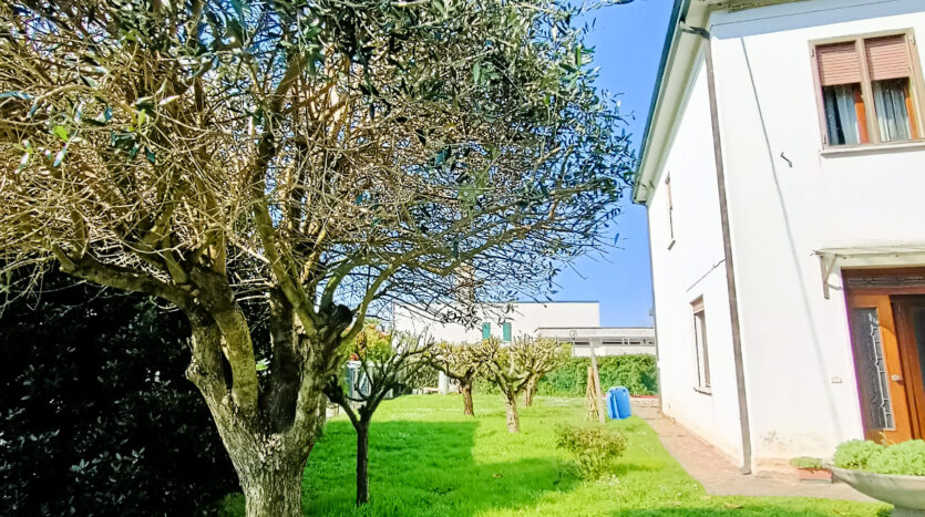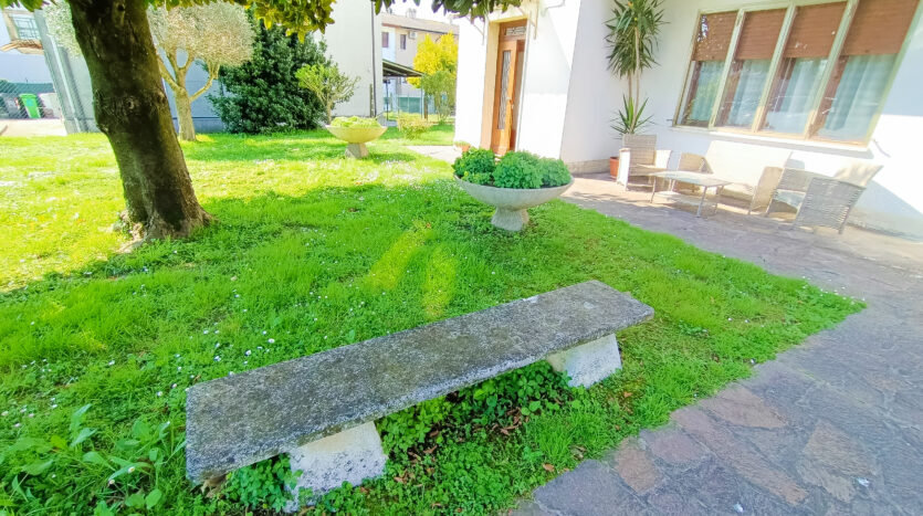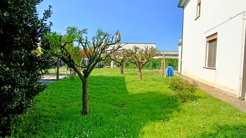 L’area esterna si estende su una superficie complessiva di circa 700 mq, offrendo spazio e respiro a chi vive questa casa. Le piante presenti, oltre agli alberi da frutto e da fiore, come la magnolia, sono un valore aggiunto del giardino, donando un tocco di profumo e colore nel periodo della fioritura.