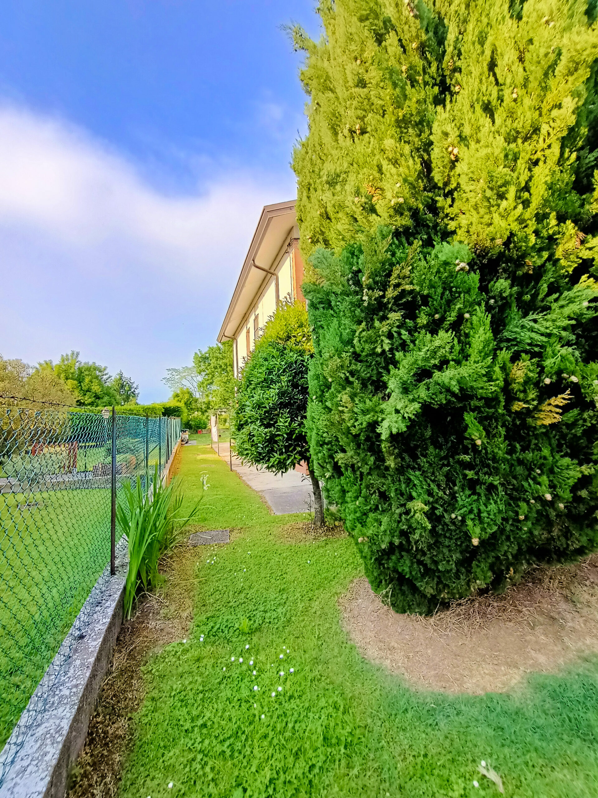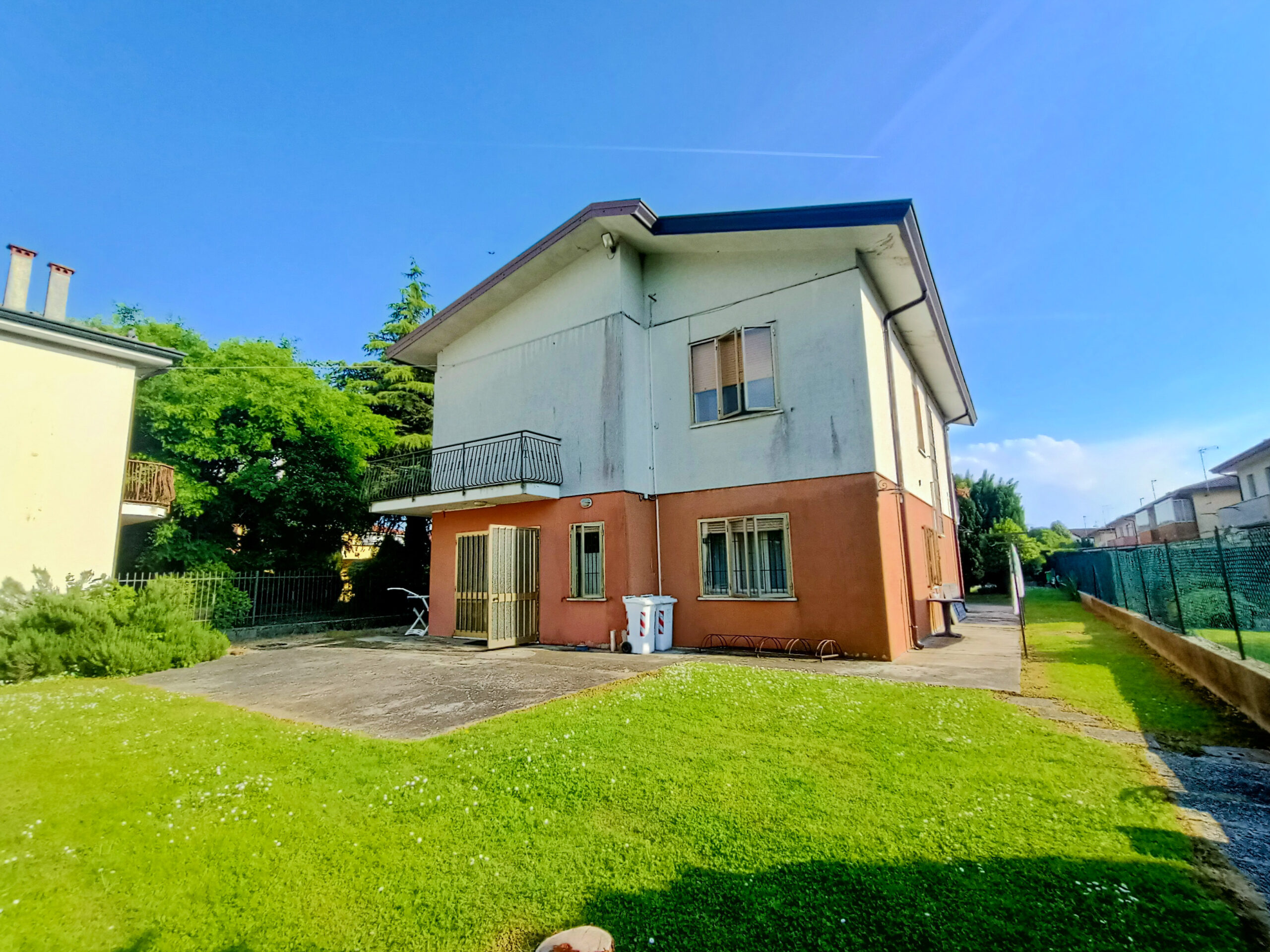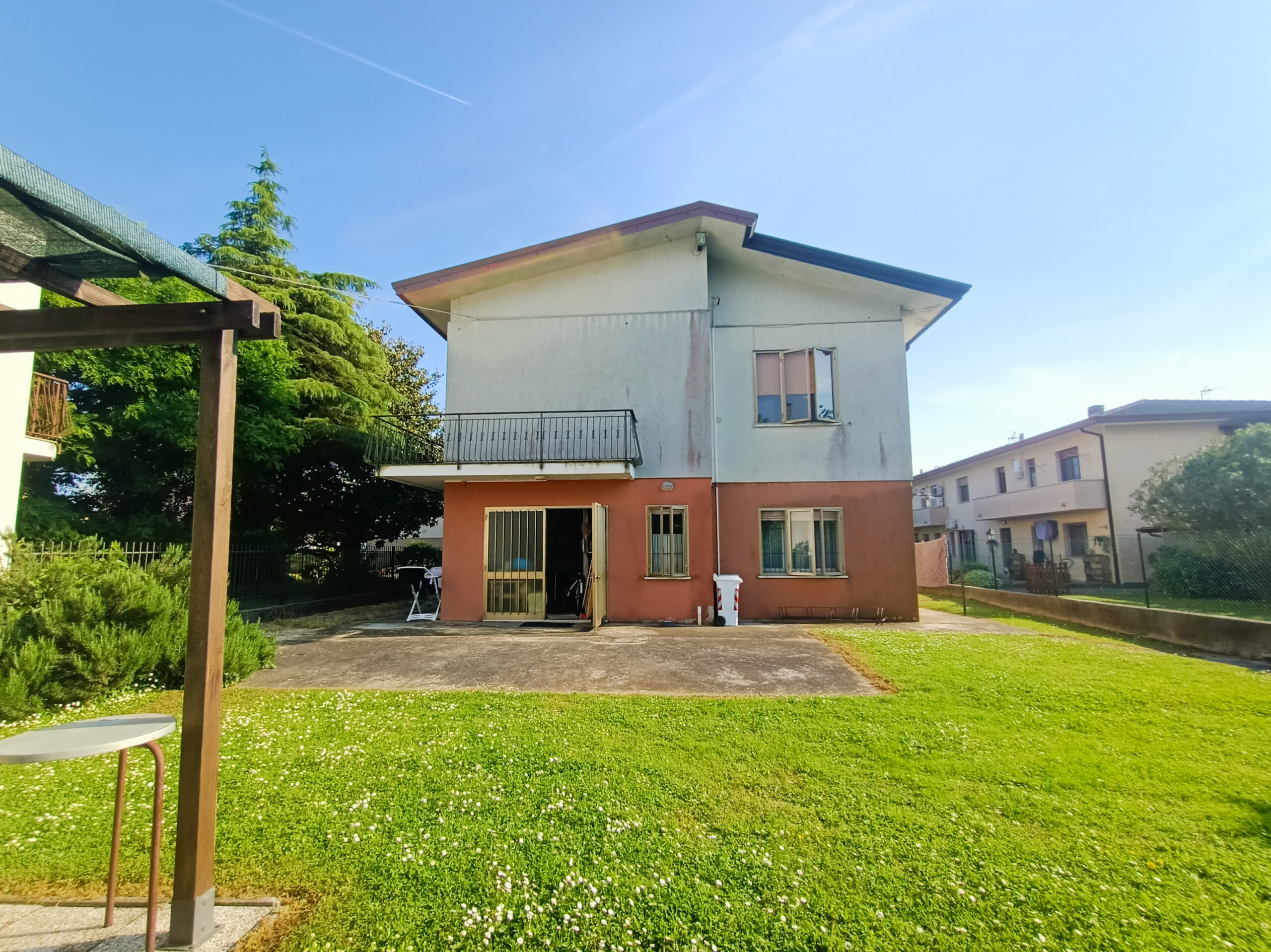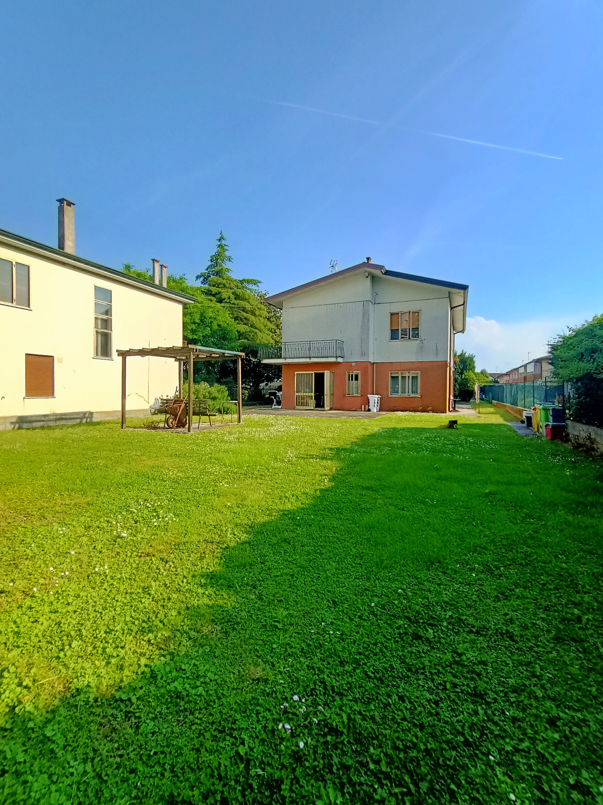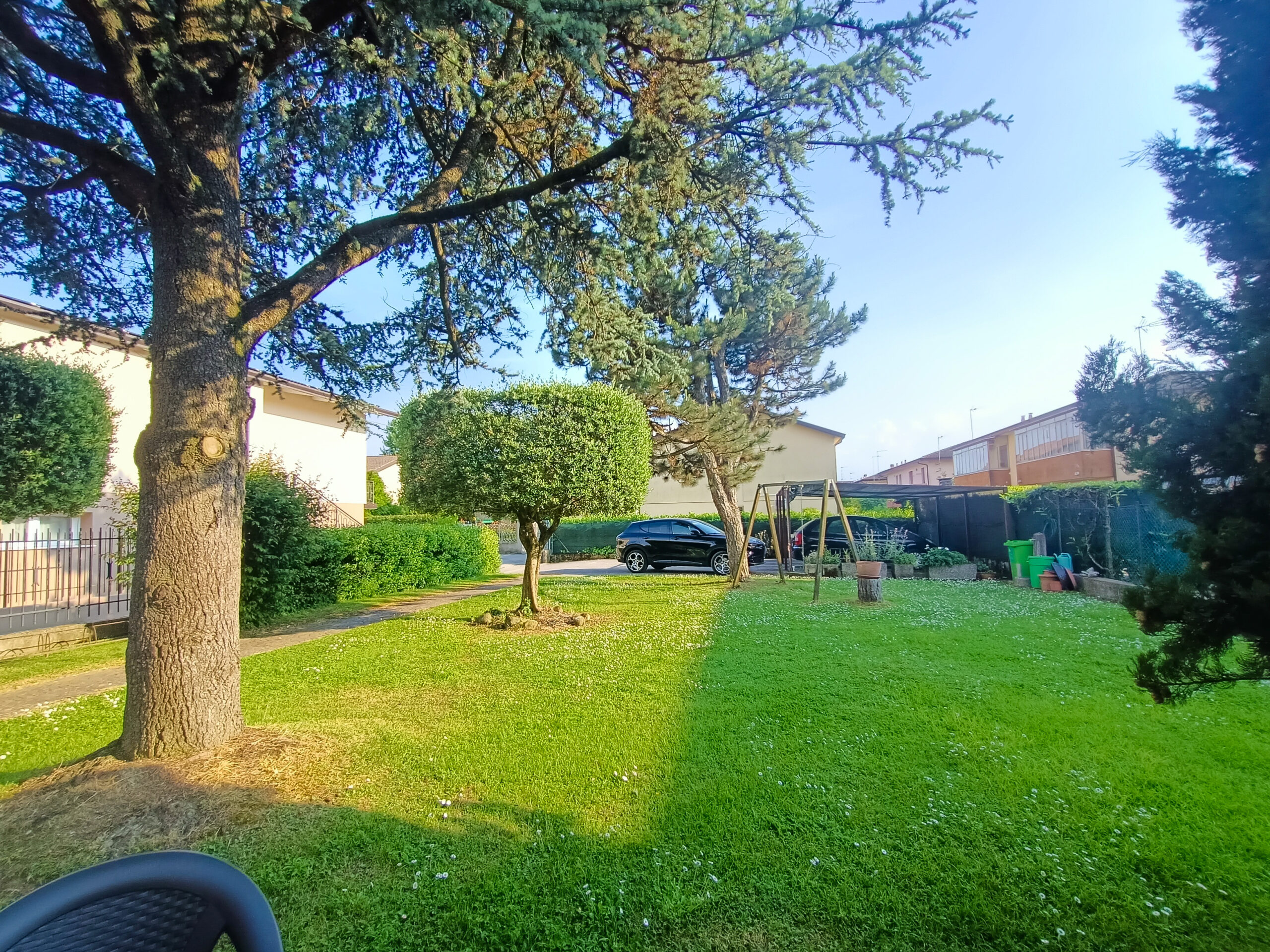 L’intera abitazione è circondata da un rigoglioso prato verde che si estende su una superficie completamente recintata di circa 1000 mq, arricchita di alberi ombreggianti ed alcune siepi che regalano ossigeno e ristoro durante i mesi più caldi. Sul fronte è presente un ingresso carraio, con pavimentazione in cemento, ed una pergola con rete ombreggiante per mettere al riparo fino a 3 auto.