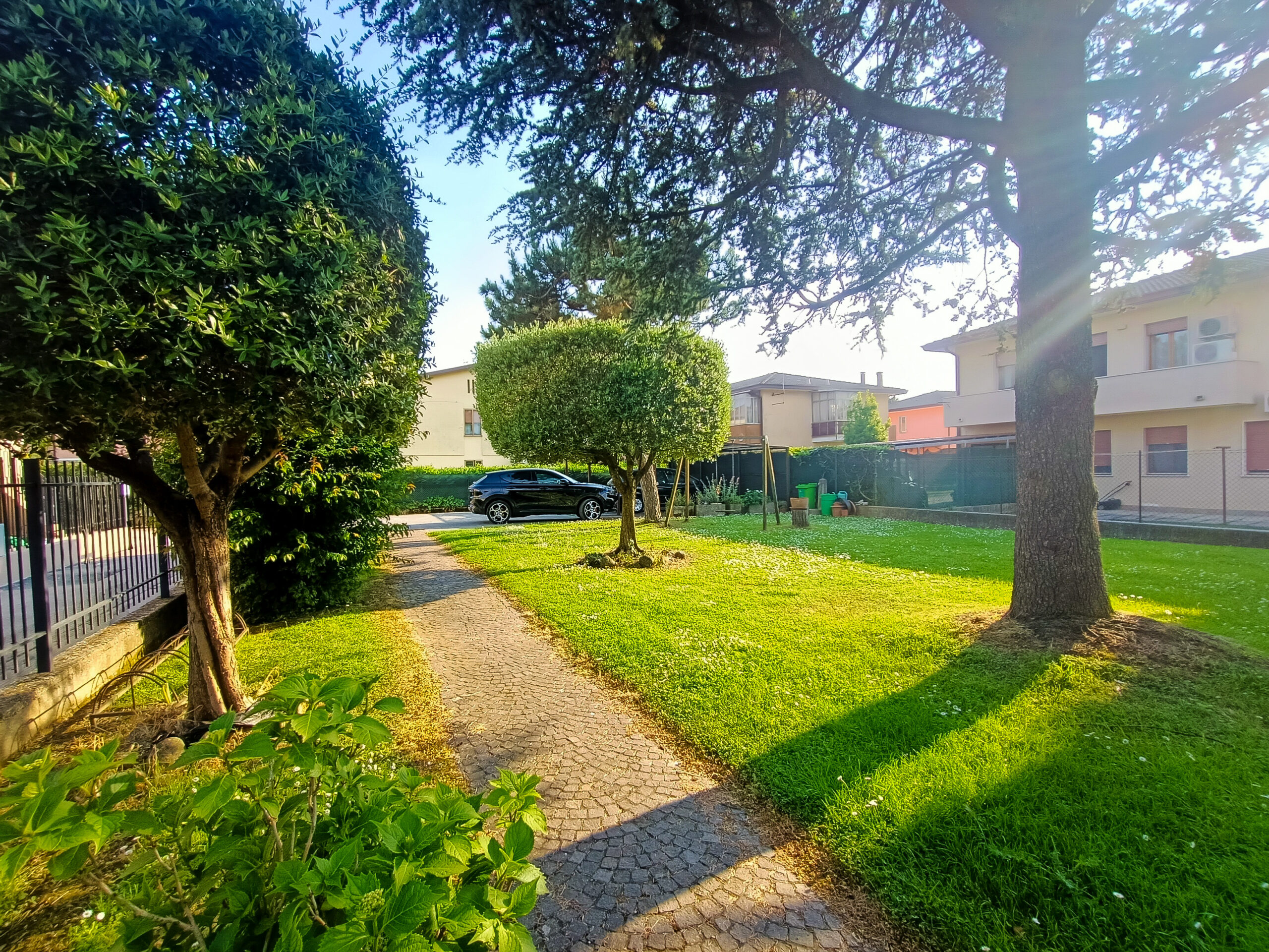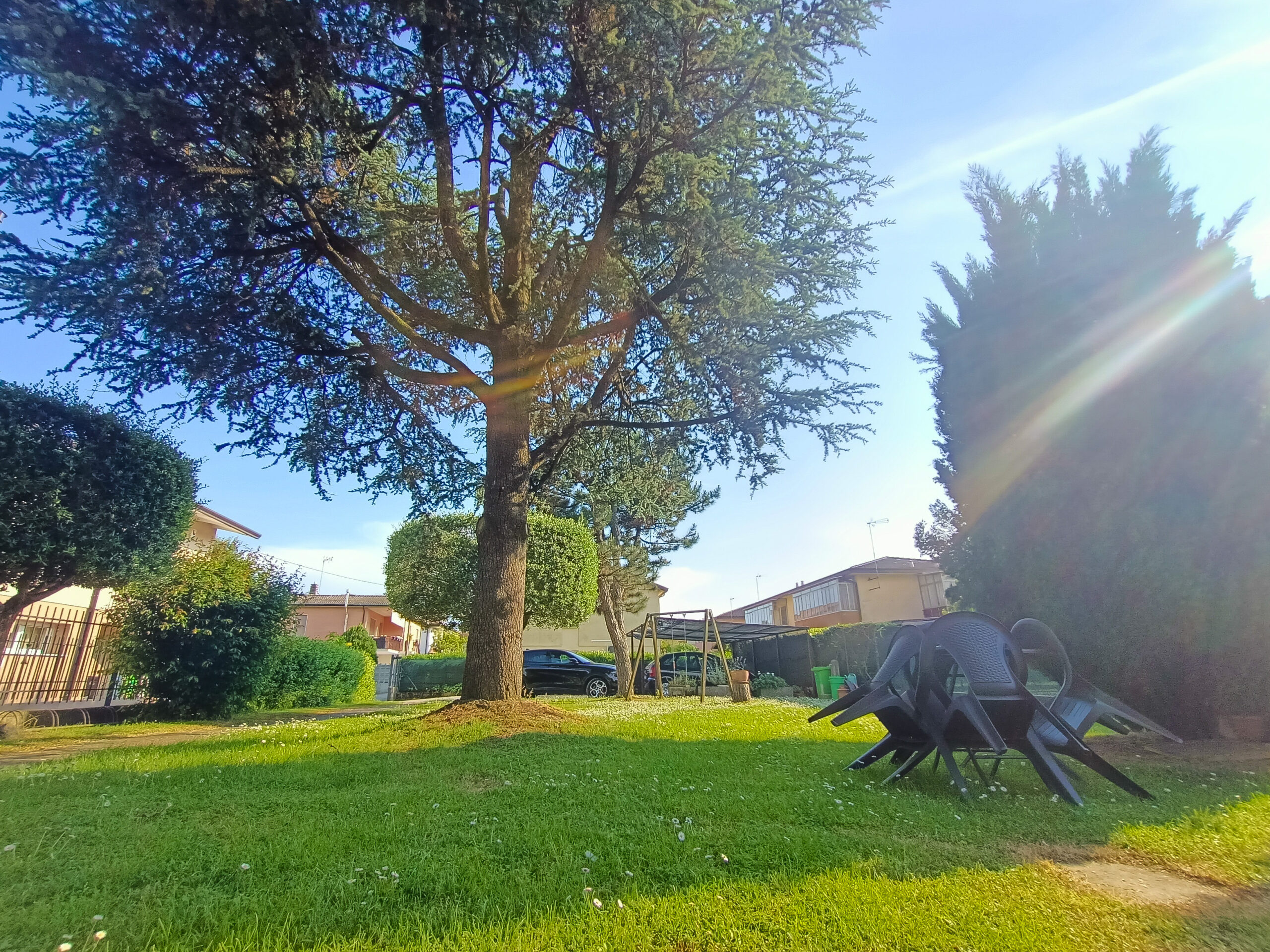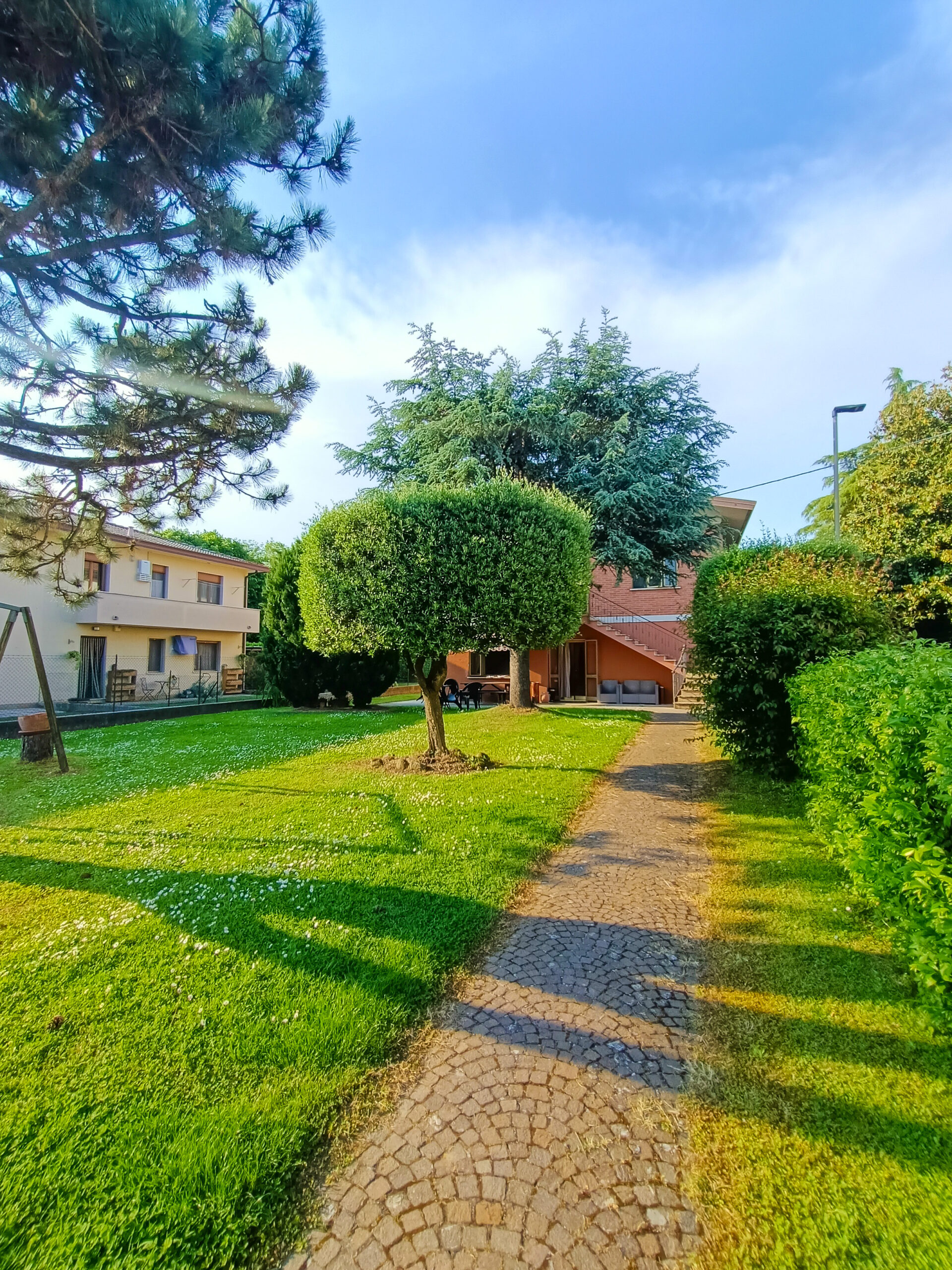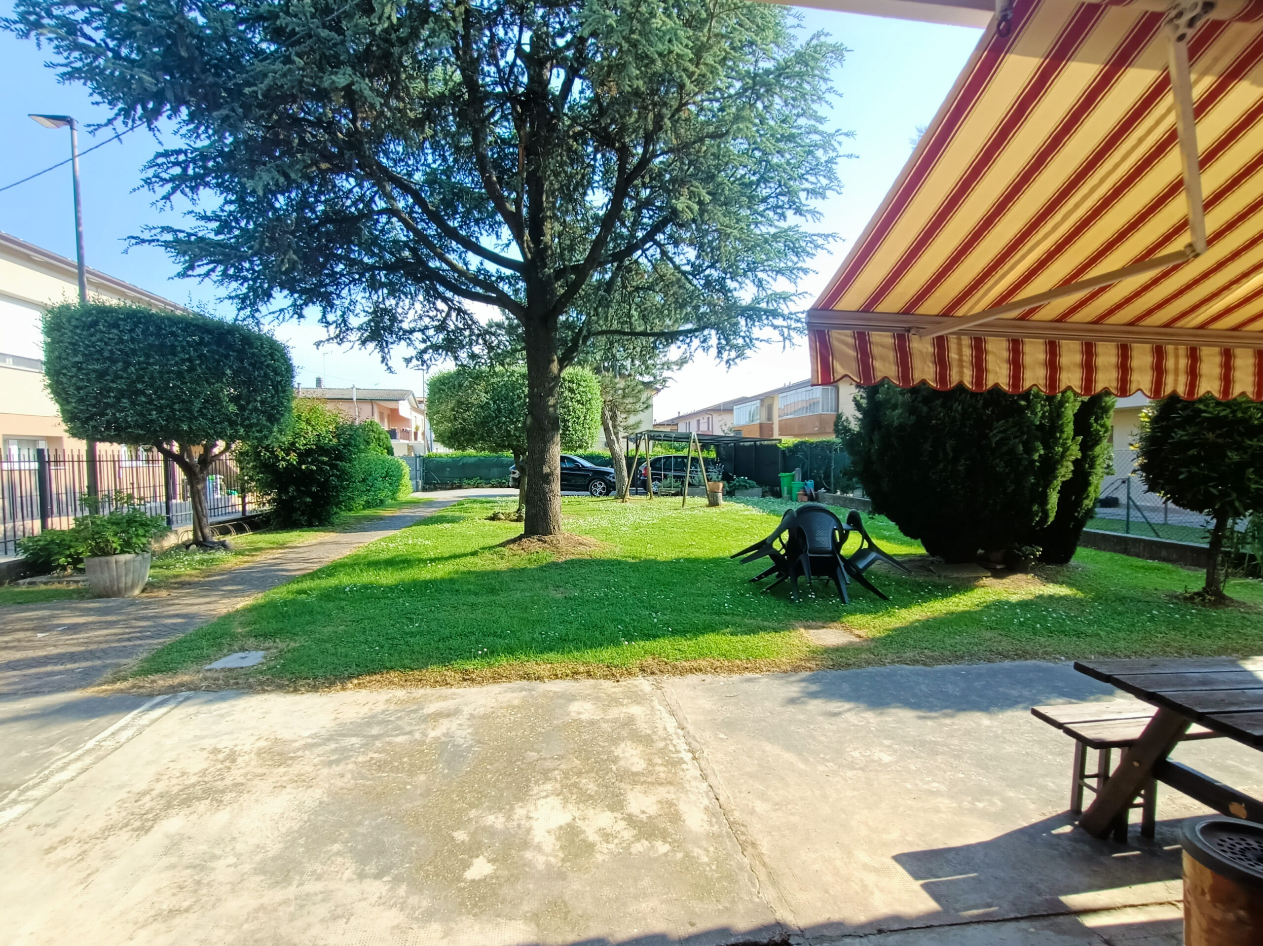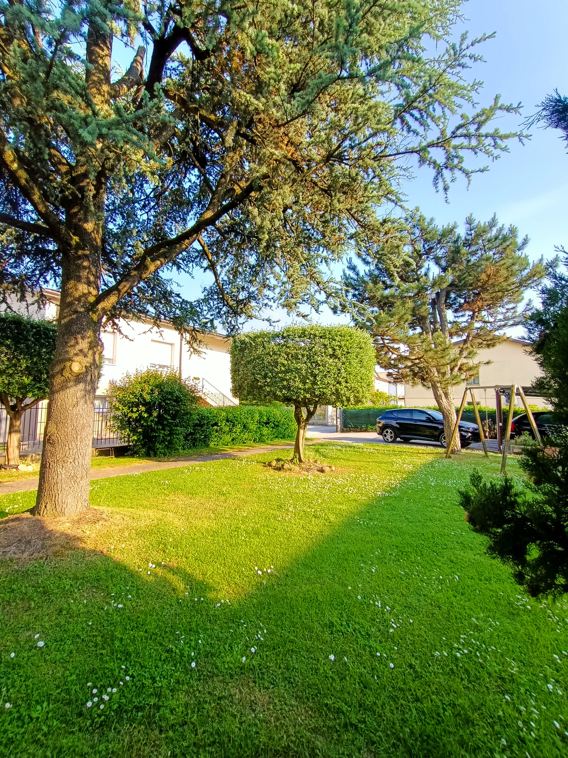 L’intera abitazione è circondata da un rigoglioso prato verde che si estende su una superficie completamente recintata di circa 1000 mq, arricchita di alberi ombreggianti ed alcune siepi che regalano ossigeno e ristoro durante i mesi più caldi. Sul fronte è presente un ingresso carraio, con pavimentazione in cemento, ed una pergola con rete ombreggiante per mettere al riparo fino a 3 auto.