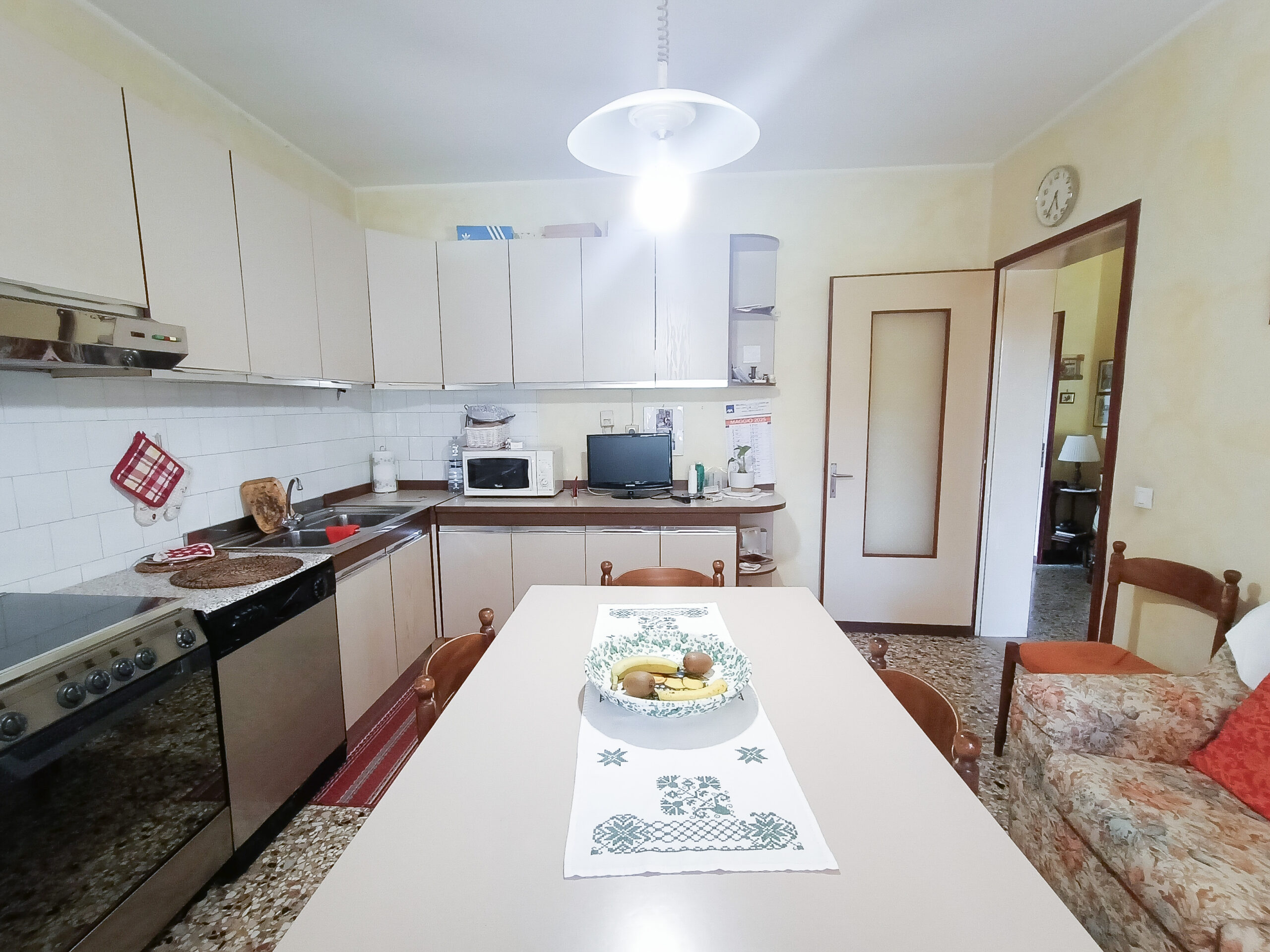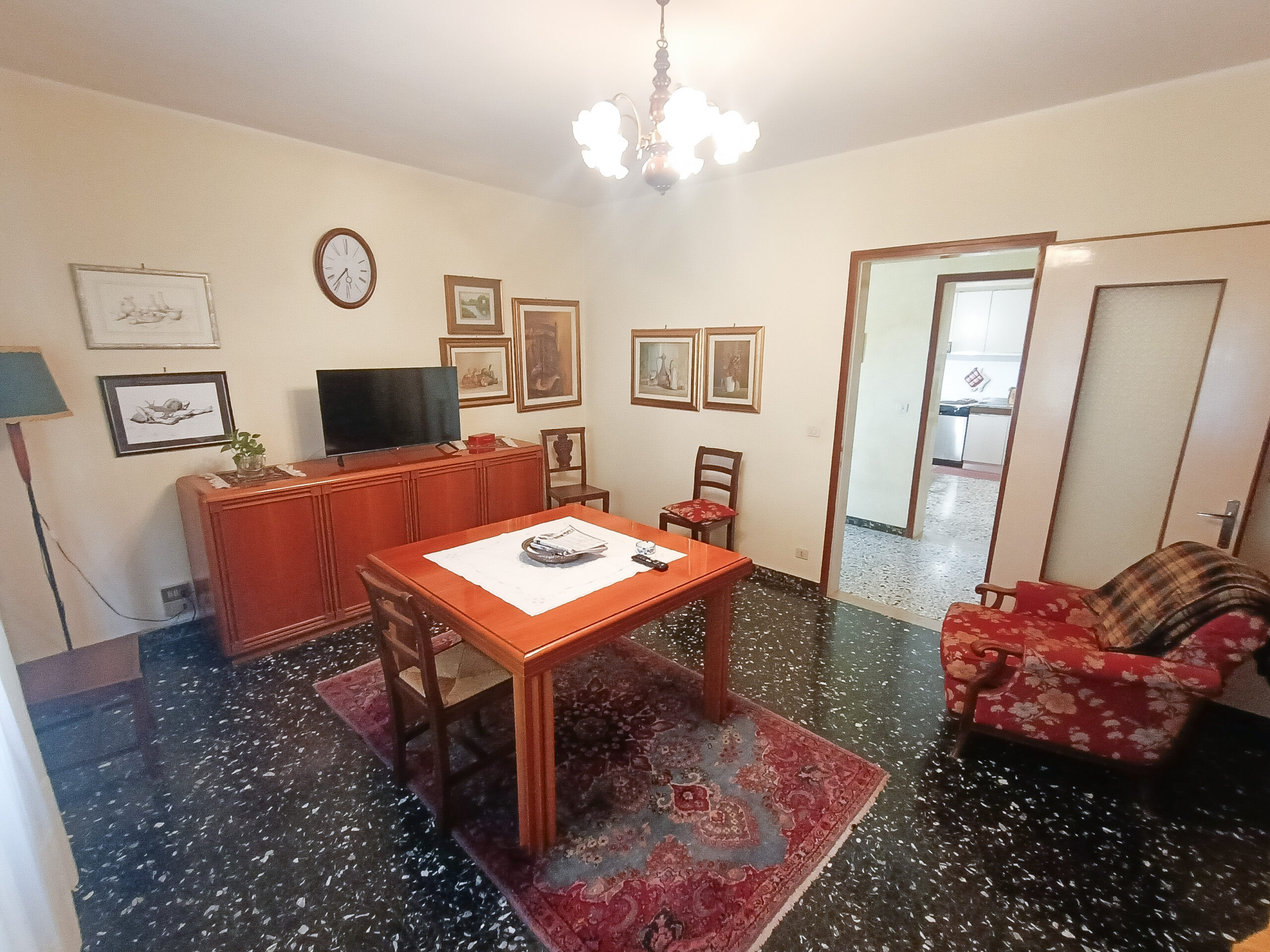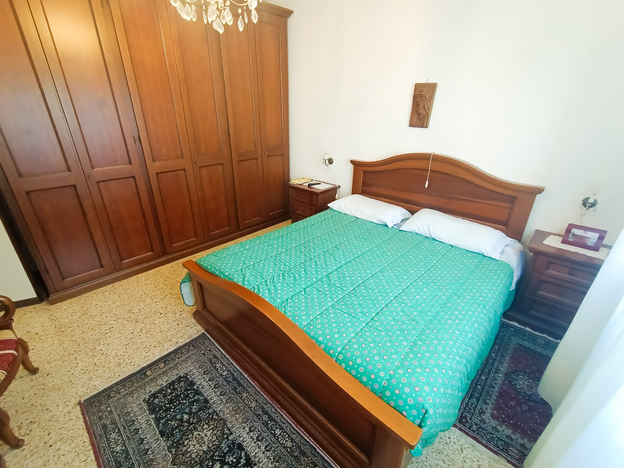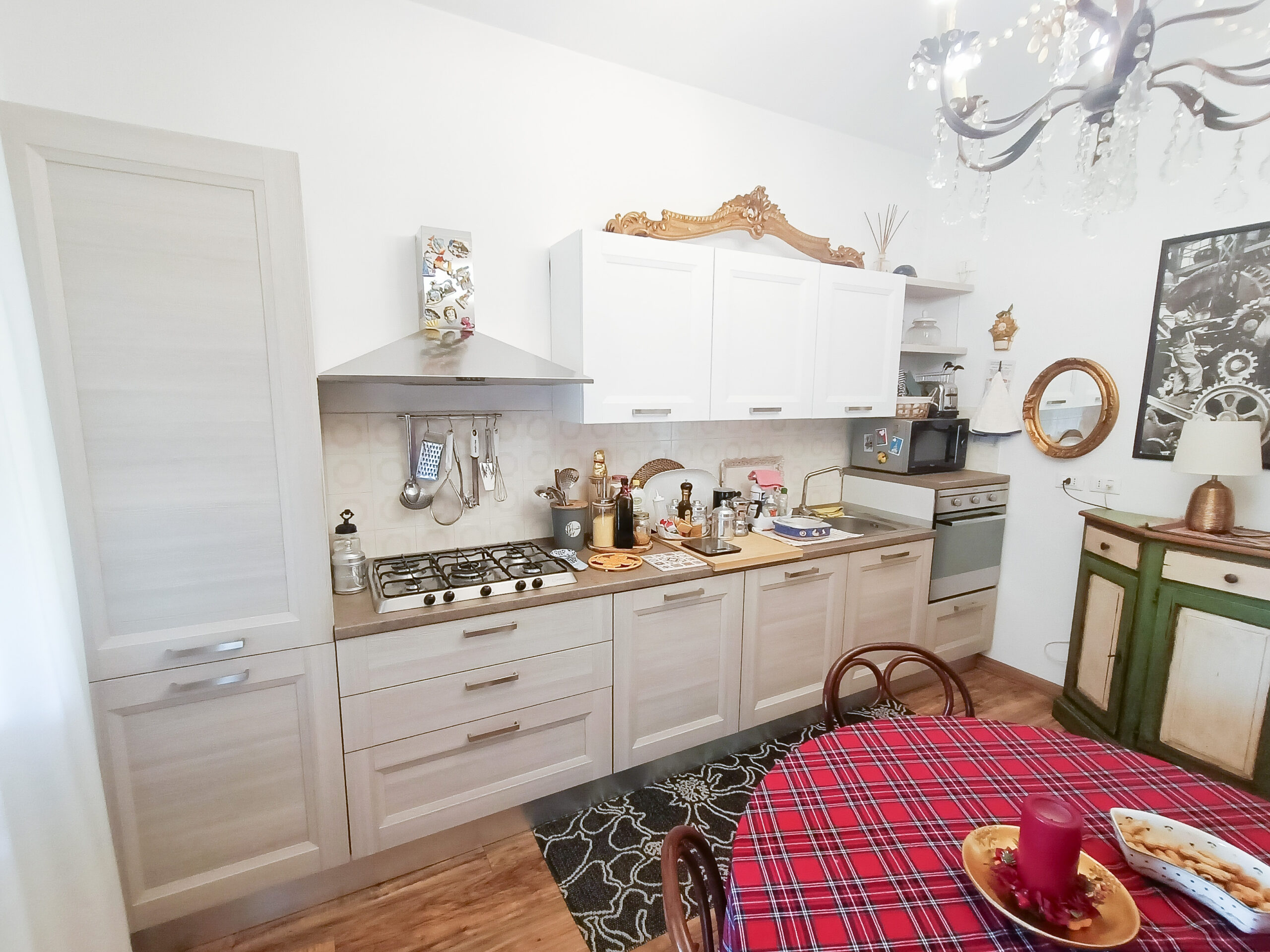 Si tratta di un’abitazione unifamiliare di ca. 240 mq attualmente suddivisa in due unità comunicanti tra loro, sia attraverso una scala esterna che una interna. Il piano terra è composto da ingresso su corridoio, cucina abitabile, soggiorno, una camera da letto matrimoniale, una cameretta, bagno con doccia, una stanza pluriuso ed un garage di 13 mq accessoriato di caminetto; al primo piano troviamo un’ampia zona living, una cucina abitabile con terrazzino, il corridoio, due camere da letto matrimoniali (di cui una con terrazzo), una cameretta ed un bagno con doccia.