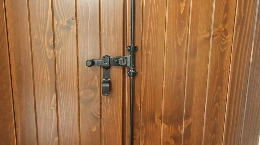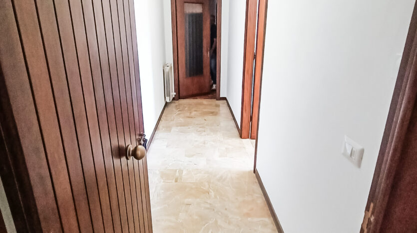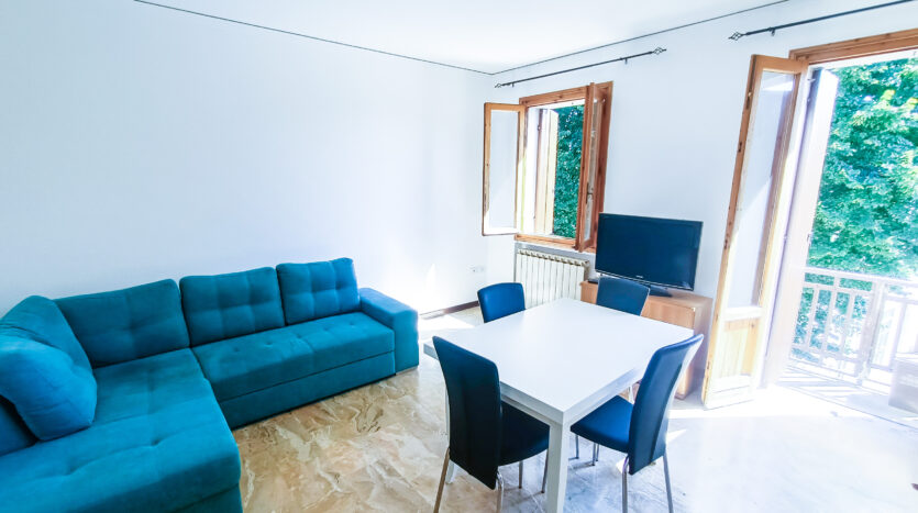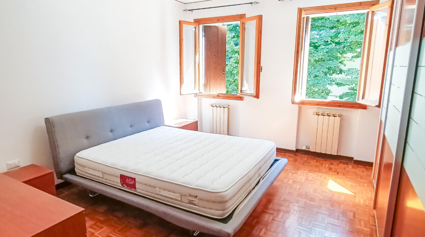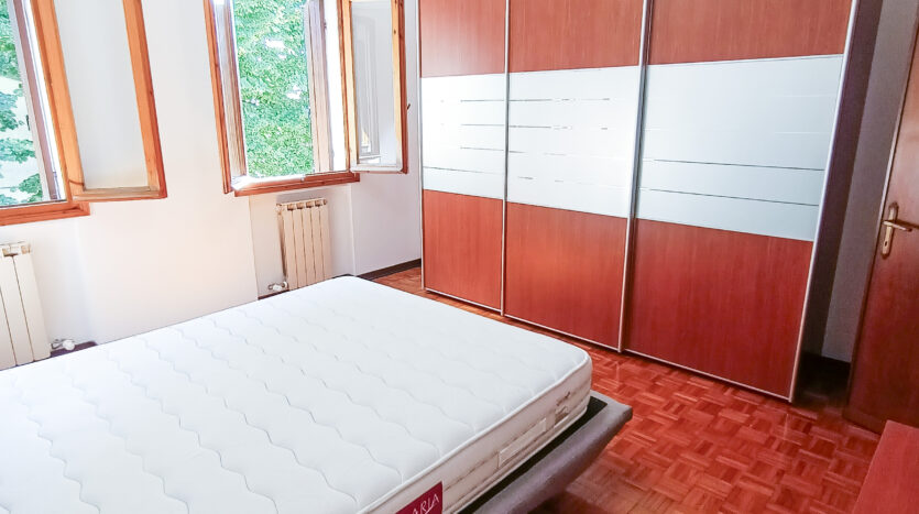 L’appartamento è accessoriato di serramenti in legno con vetrocamera e scuri in legno. La pavimentazione è in marmo nella zona giorno e nel corridoio, mentre è in parquet nella camera da letto.