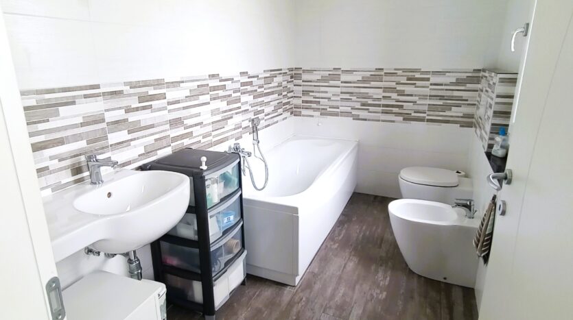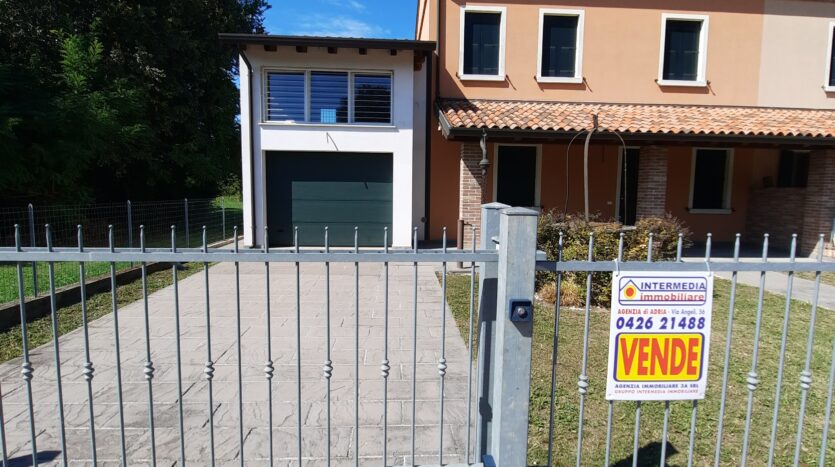 Proponiamo in vendita, IN ESCLUSIVA, bellissima villetta a schiera di testa con garage e giardino. L’abitazione di recente costruzione si sviluppa su due livelli, il piano terra ospita un ambiente open space molto confortevole con splendida cucina a vista su un soggiorno ampio e luminoso reso ancor più caldo ed avvolgente dalla presenza di un caminetto a pellet che potrà rendere piacevoli le serate invernali. Al p. terra è presente un antibagno accessoriato di lavatrice e di armadietti realizzati su misura; il bagno è finestrato e completo di sanitari e doccia. Il piano superiore è accessibile tramite una scala a vista sulla sala, realizzata in marmo biancone e parapetto in cristallo con finiture in acciaio che funge da elemento di arredo. Nel reparto notte è presente una camera da letto singola ancora da personalizzare, è infatti possibile completarla con un piccolo ma grazioso soppalco a vista dove creare una postazione computer o una cabina armadio, la camera padronale invece è già stata personalizzata con un capiente vestier/spogliatoio, infine completa il reparto notte un grande bagno con vasca. I lavori per la costruzione della villetta sono iniziati nel 2010 e terminati nel 2018, anno in cui è stato realizzato un ampio garage con soppalco. In garage vi è la predisposizione per l’impianto dell’acqua, un termoconvettore e il basculante sezionale elettrico. Il soppalco è un ambiente con travatura a vista da declinare in base alle singole esigenze, potrebbe diventare una palestra o uno studio e un indomani potrebbe essere utilizzato per ampliare ulteriormente la superficie dell’abitazione. Tra le finiture di eccellenza annoveriamo i serramenti con zanzariere in PVC antisfondamento con doppio vetro e cappotto termico da 10 cm. L’ abitazione è proposta in vendita con l’arredamento completo della cucina, il mobile TV e mobili contenitori realizzati su misura presenti nella lavanderia. Per quanto riguarda gli impianti tecnologici evidenziamo la presenza di 2 split, uno per piano con motore esterno utilizzabili sia per il raffrescamento che in versione pompa di calore e un caminetto a pellet marca “ PIAZZETTA” incassato a filo parete con flusso canalizzato nel reparto notte, caldaia a condensazione Viessmann, da tutto ciò ne consegue una classe energetica A1. La classe energetica A1 vi permetterà di accedere ad un mutuo green che garantisce un vantaggio in termini di tasso d’interesse. Fare un investimento in questa tipologia di casa significa anticipare le tendenze future del mercato. Le normative europee previste, porteranno ad aumentare l’interesse nei confronti di tali immobili, con il conseguente aumento del loro valore, dovuto da una domanda di mercato più forte e crescente. Il giardino già piantumato si sviluppa su tre lati, la parte retrostante molto ampia offre la possibilità di soggiornare in completo relax e privacy immersi nel verde, quella sul fronte invece è valorizzata dal camminamento pedonale e carraio pavimentati in pietra con aiuola e portico. Questo è un luogo dove la modernità abbraccia la natura, dove la città si fonde armoniosamente con il verde circostante. Un simbolo di innovazione ed eco-sostenibilità, nuovo standard di vivibilità e benessere. Lasciati catturare dalla bellezza degli interni, pensati per creare un legame indissolubile con l’esterno. Le portefinestre della casa si aprono sul portico a sul giardino esclusivo, mentre il design raffinato conferisce un tocco di eleganza ad ogni spazio. Potrai goderti la tua nuova casa senza preoccupazioni. La posizione è privilegiata, a breve distanza dal centro storico e dalle bellezze della città di Adria. Qui, la vita urbana si mescola armoniosamente con la tranquillità della natura, offrendo un’oasi di serenità nel cuore della città. L’ubicazione è fortemente strategica per raggiungere i punti più importanti della città; percorrendo a piedi o tramite una comodissima pista ciclabile ombreggiata da verdi alberi si può raggiungere comodamente il centro storico della nostra meravigliosa città.