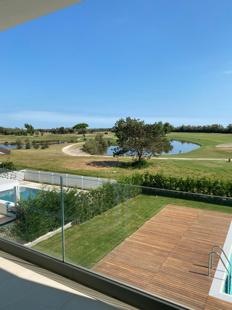 Gli spazi sono generosi e ben articolati; si va dalla camera da letto padronale con ampio bagno privato, alle altre 3 camere da letto anche queste dotate di ampie vetrate e di un proprio bagno. L’indoor living è invidiabile per dimensioni e luminosità: anche qui è enfatizzato l’effetto “green” dal susseguirsi di pareti in cristallo, tutte apribili, che aggettano sul verde giardino; poco oltre l’azzurro della enorme piscina, le tinte calde delle doghe in legno di tek che pavimentano il solarium e le verdi collinette del campo da golf che nell’insieme formano una scenografia eccezionale. Il rumore del mare ed il suo ventilato profumo inonda ogni centimetro quadrato del giardino.
